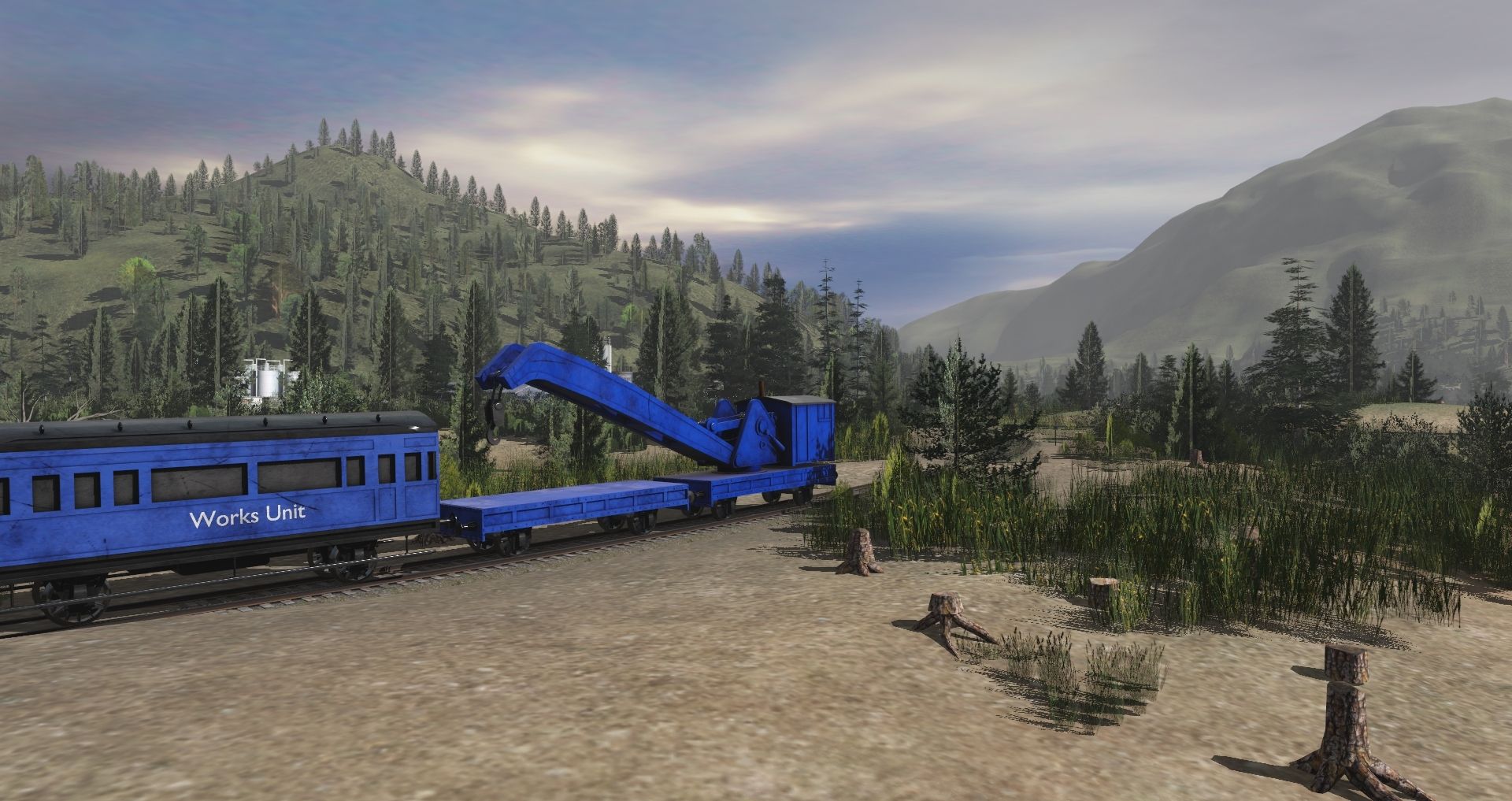 Tags: Trainz Railroad Simulator 2022, 0Lake Ebony and Southern, 0Lake Ebony and Southern - Default, SF - The Works Unit Coach, SF - The Breakdown Crane Flat Wagon, SF - The Breakdown Crane