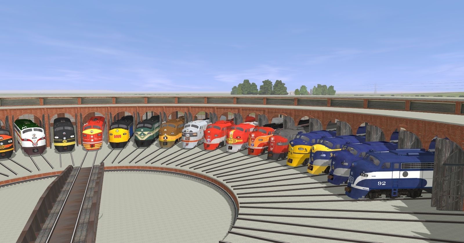 Tags: Trainz: A New Era, Ryan's Megaroute Module, EMD E8 AMRoad #7040, EMD E8 (E7) Frisco #2003, EMD E8 Atlantic Coast Line #500, NKP EMD E8 #92 V2, EMD E8 CB&Q #9944A, C&O E8 #4019 Blue and Silver V2, EMD E8 Erie #810, C&O E8 #4017 V2, EMD E8 GM&O #100A, C&O E8 #4000 (Freight Scheme) V2, EMD E8 Jacob Western #7010