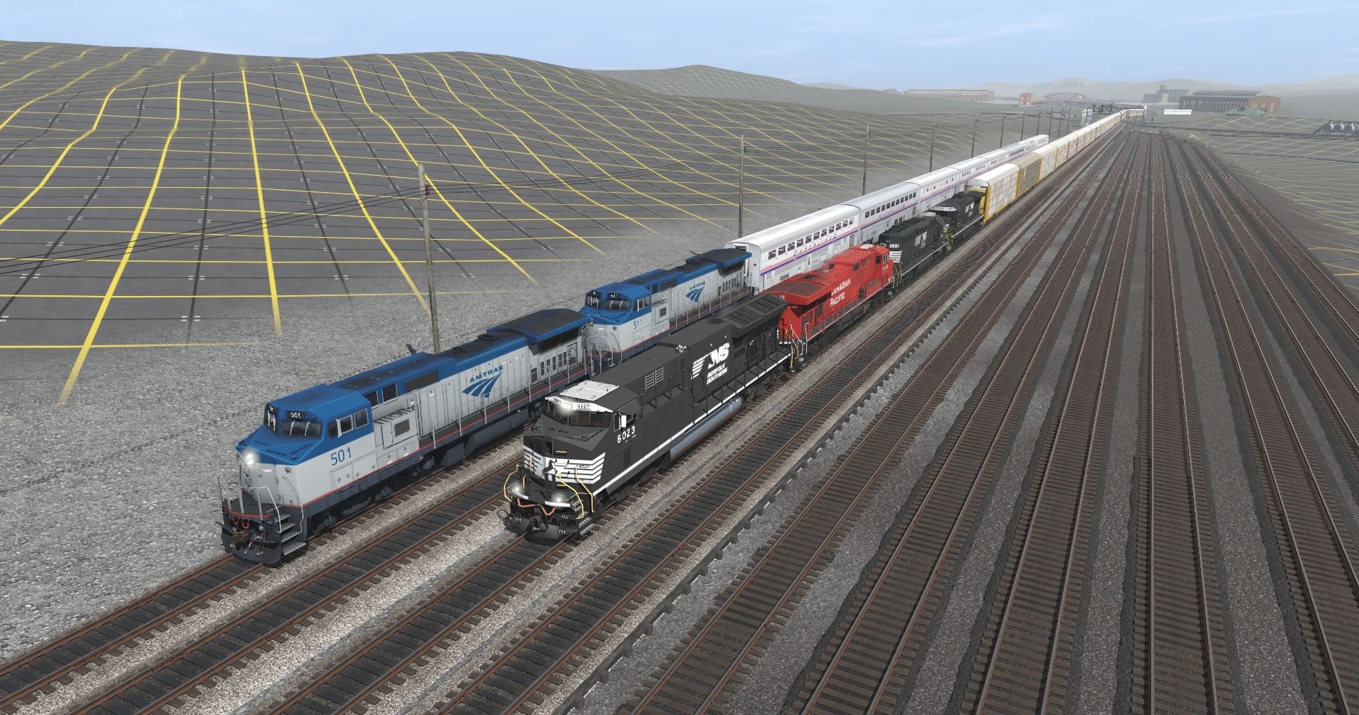 Tags: Trainz Railroad Simulator 2019, Pitts to Philly and More WIP 21, AMTRAK, ES44AC Tier 4 Locomotive NS, Amtrak P32-8BWH Ph V, GE ES44AC CP 9350-9379, EMD SD40-2 NS (Ex-CR) Horsehead #, GE C40-8 NS Horsehead, Superliner I Coach Bagagge 31005, Superliner II Sleeper 32501, Superliner II Dining Car 38040, Superliner II Transition Sleeper 39031, Superliner II Coach 34120, 89Ft Autorack CSX