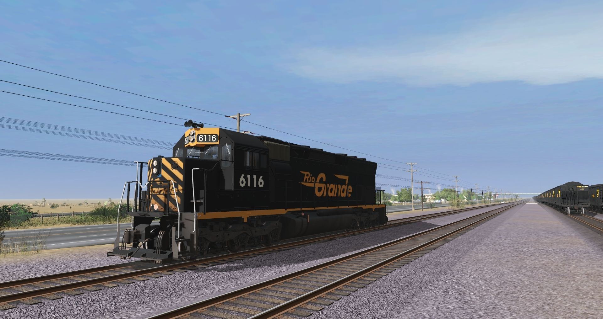 Posted by: ljdj | Posted:2022-06-22 17:10:25 Caption: Tags: Trainz Railroad Simulator 2019, Mojave Sub Division, Default, DRGW SD45, CPR 100 Ton Hopperr
