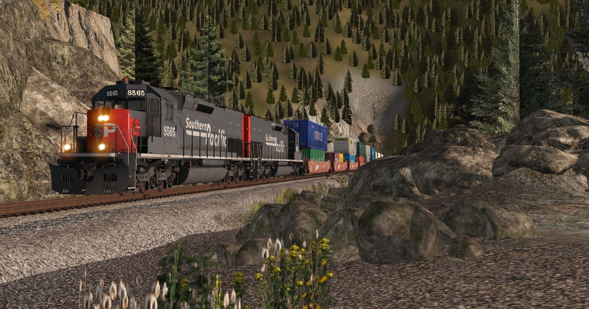 Tags: Trainz Railroad Simulator 2022, BN Oasis V2, Default, SP SD40T-2 speedletter, 53ft BNSF H3 Wellcar Weathered (Single), 53ft BNSF H3 Wellcar (Single), 53ft BNSF H2 Wellcar Weathered (Single), 53ft BNSF H2 Wellcar (Single), Spinecar A Unit Dirty, Spinecar C Unit Dirty, Spinecar D Unit Dirty, Spinecar E Unit Dirty, Spinecar B Unit Dirty, BNSF 53 Maxi-IV B (weathered)