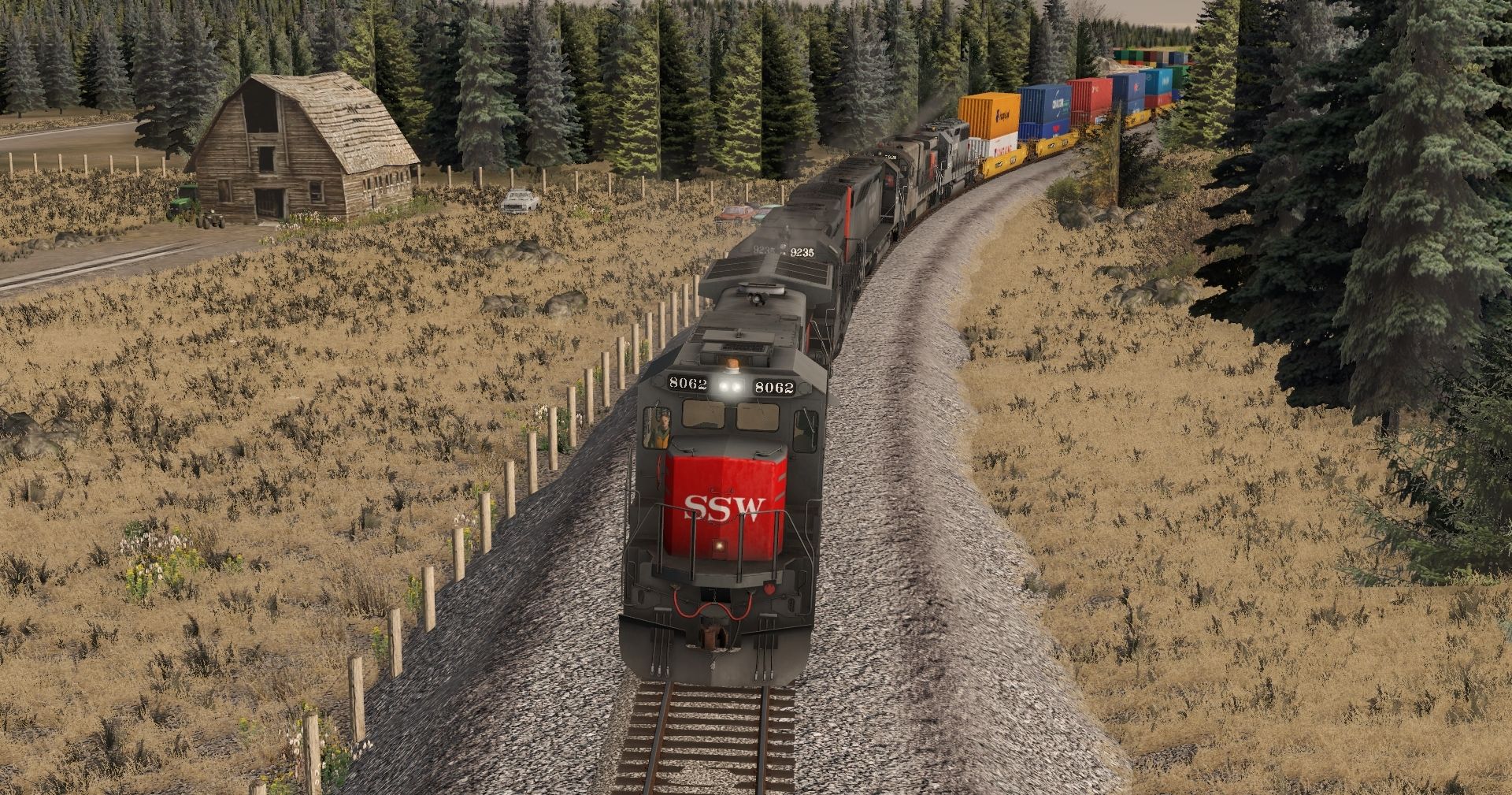 Tags: Trainz Railroad Simulator 2022, BN Oasis V2, Default, SSW B40-8, SP SD45T-2 ph1a, SP SDP45, SP B30-7 W1, SP GP60 Ph2a, TTX 53 Husky Stack, 40ft Boxcar NP