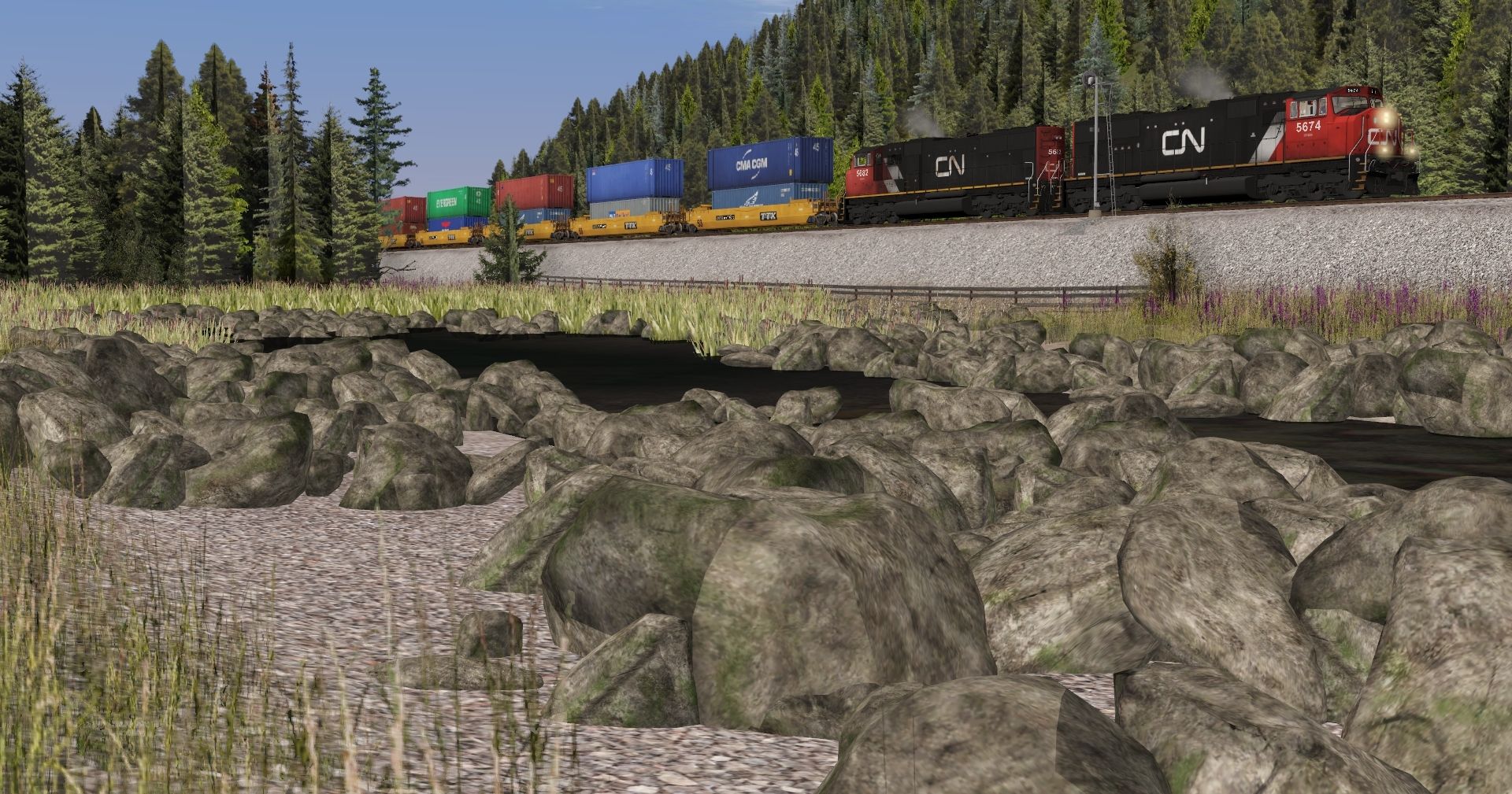 Posted by: Lindab73 | Posted:2022-06-24 16:45:21 Caption: Tags: Trainz Railroad Simulator 2022, BN Oasis V2, Default, CN SD75I, TTX 53 Husky Stack