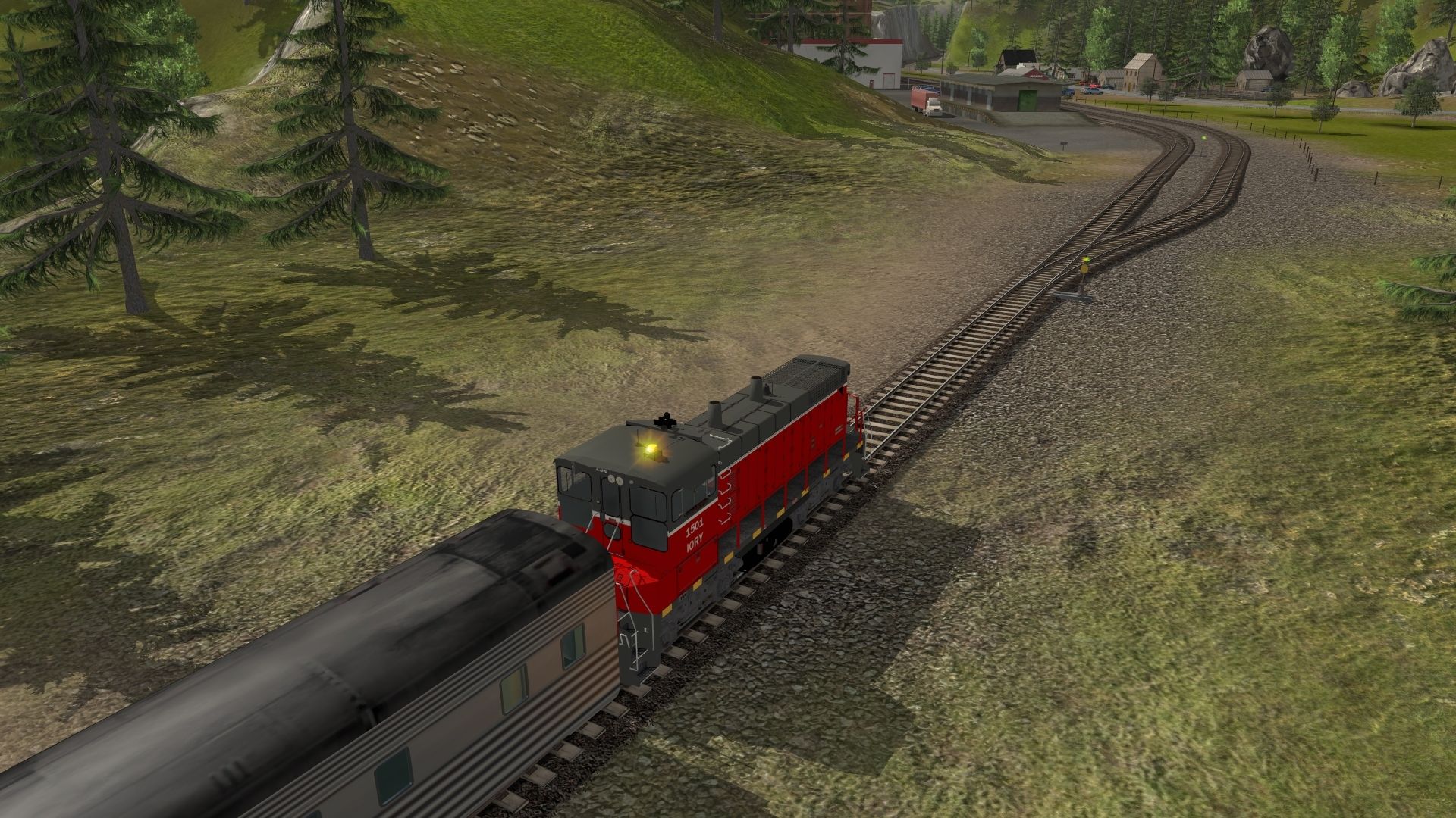 Tags: Trainz: A New Era, Kickstarter County, Tutorial 02 - Junctions, SW1500 IORY 1501 Indiana & Ohio Railway, Southern Streamlined Coach
