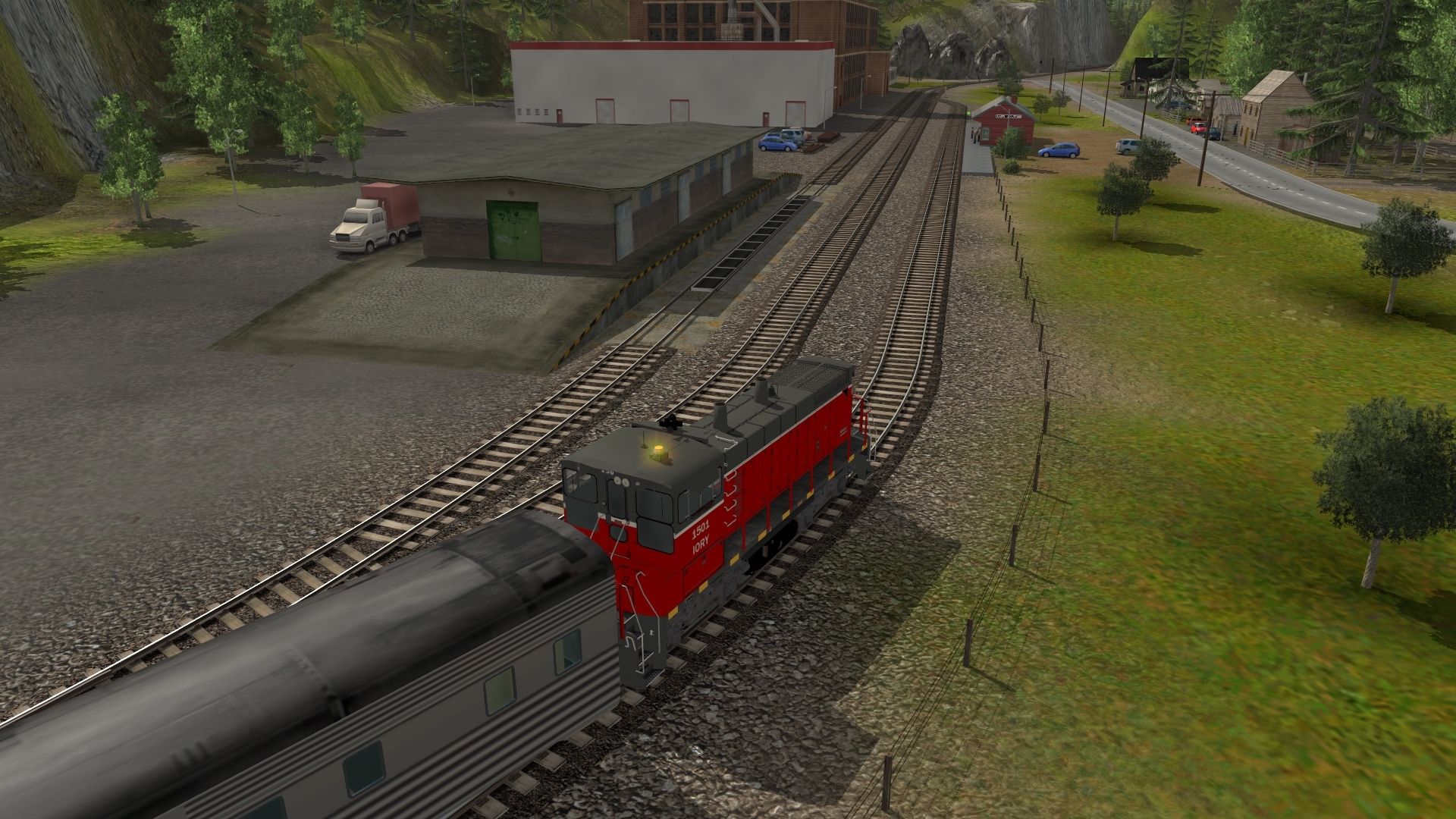 Tags: Trainz: A New Era, Kickstarter County, Tutorial 02 - Junctions, SW1500 IORY 1501 Indiana & Ohio Railway, Southern Streamlined Coach
