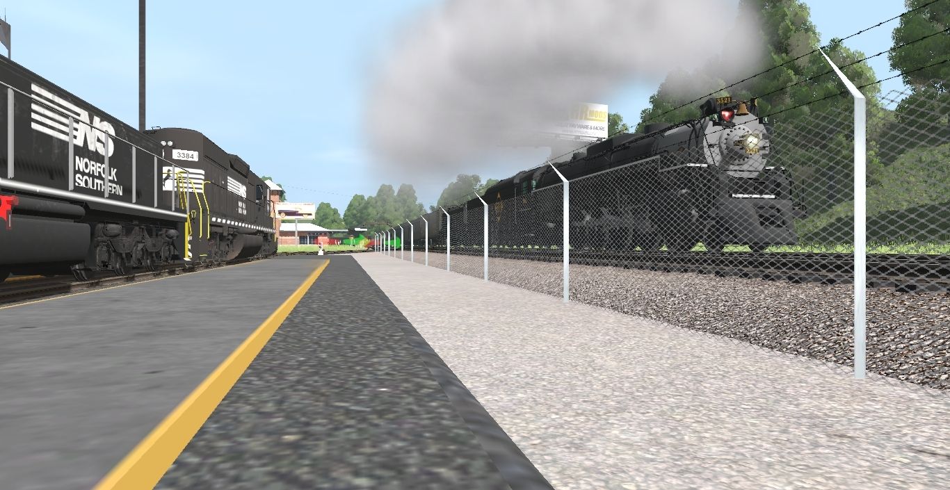 Tags: Trainz Railroad Simulator 2019, NS Small District (Loop), NS EMD Yard Slug #871 (exSD40), EMD GP60 NS #7122, EMD SW1500 NS 2232, Erie T-1a 4-8-4 #3521, EMD SD40-2 NS #3384, EMD SD70ACe Norfolk Southern, NS Dash9 #9746, NS Dash9 #9689, NS Dash9 #8929, Erie T-1a 4-8-4 #3521 Tender, N&W Aux Tender Unlettered