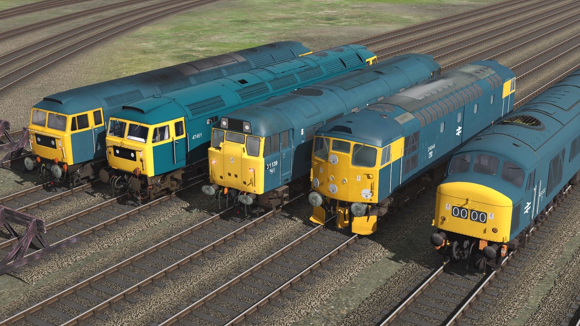 Tags: Trainz Railroad Simulator 2019, Norfolk TS19 V1, Norfolk TS19 V1 - Default, BR Class 45-1 blue TOPS 1970s centre split hc, BR Class 26/1 Blue discs IS, BR Class 31-1 and 31-4 Blue plated2, BR Class 47 PBR, BR Class 47 blue 1970s 1