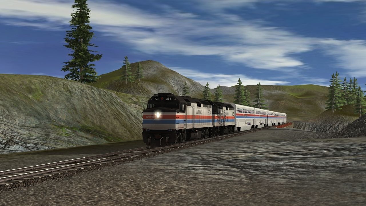 Tags: Trainz: A New Era, Kickstarter County, Free Drive Session Test 01, AMTK F40PH ph2, Amtrak II Coach Superliner, Amtrak II Coach Baggage Superliner