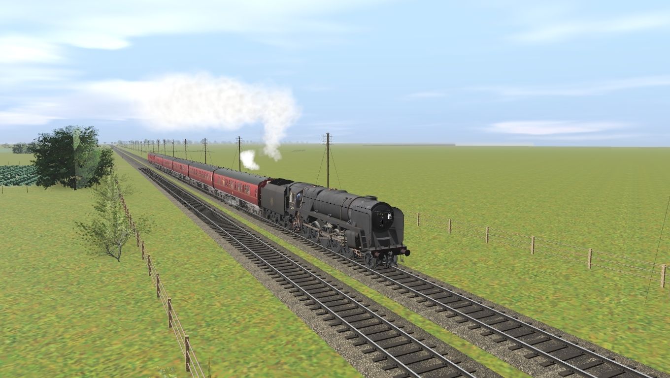 Tags: Trainz Railroad Simulator 2019, East Lincolnshire5h, BR 9f Double Chimney, BR 9f tender BR1B Early Logo, BR Mk1 CK Maroon, BR Mk1 SK Maroon, BR Mk1 BSK Maroon, BR Mk1 CCT Maroon (lined)