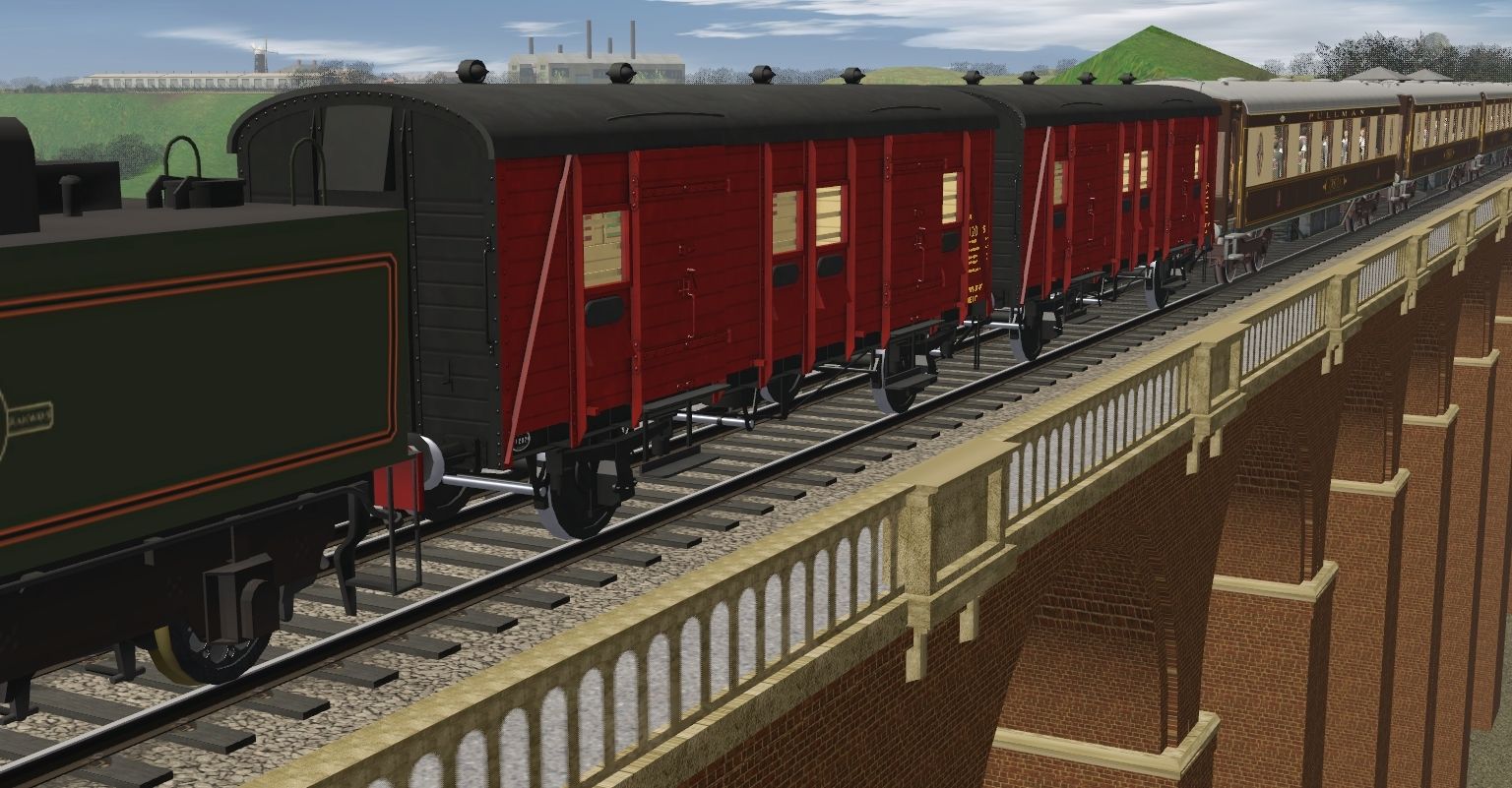 Tags: Trainz Railroad Simulator 2019, SUSSEX V2 TANE V6.76 (Sussex Lines UK + West Sussex), RB Merchant Navy, LBSCR A1x BR Black Mainland, RB Merchant Navy 6000 Gal Late Logo Tender, BR Maunsell PMV - Passenger Miscelaneous Van - Crimson, Pullman K Parlour First, Pullman 1951 Bar, Pullman K Kitchen First, Pullman K Parlour Third, Pullman K Brake Third, BR 20T Brakevan Unfitted Weathered (diag. 1/504), Ex-LMS 6 Wheel Milk Tanker Express Dairy