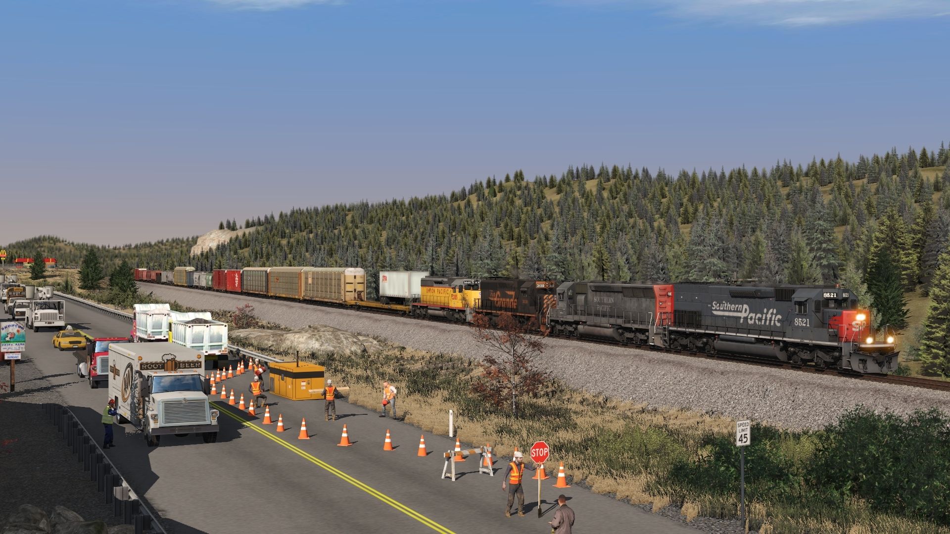 Tags: Trainz Railroad Simulator 2019, BN Oasis, SP SD40T-2 speedletter, SP SD45, GP40-2 DRGW #3130, UP SD40-2 ph1b 116 Early, TTX 89ft TOFC Flatcar, 89ft Autorack Tri-Level UP # 454655, 89Ft Autorack DRGW, 89ft Autorack Tri-Level CN # 535168, ATSF 60ft Boxcar PS (Autoparts), ATSF 60ft Boxcar PS [Late] (Autoparts), BN Green V1 2 Bay Hopper ACF 2971