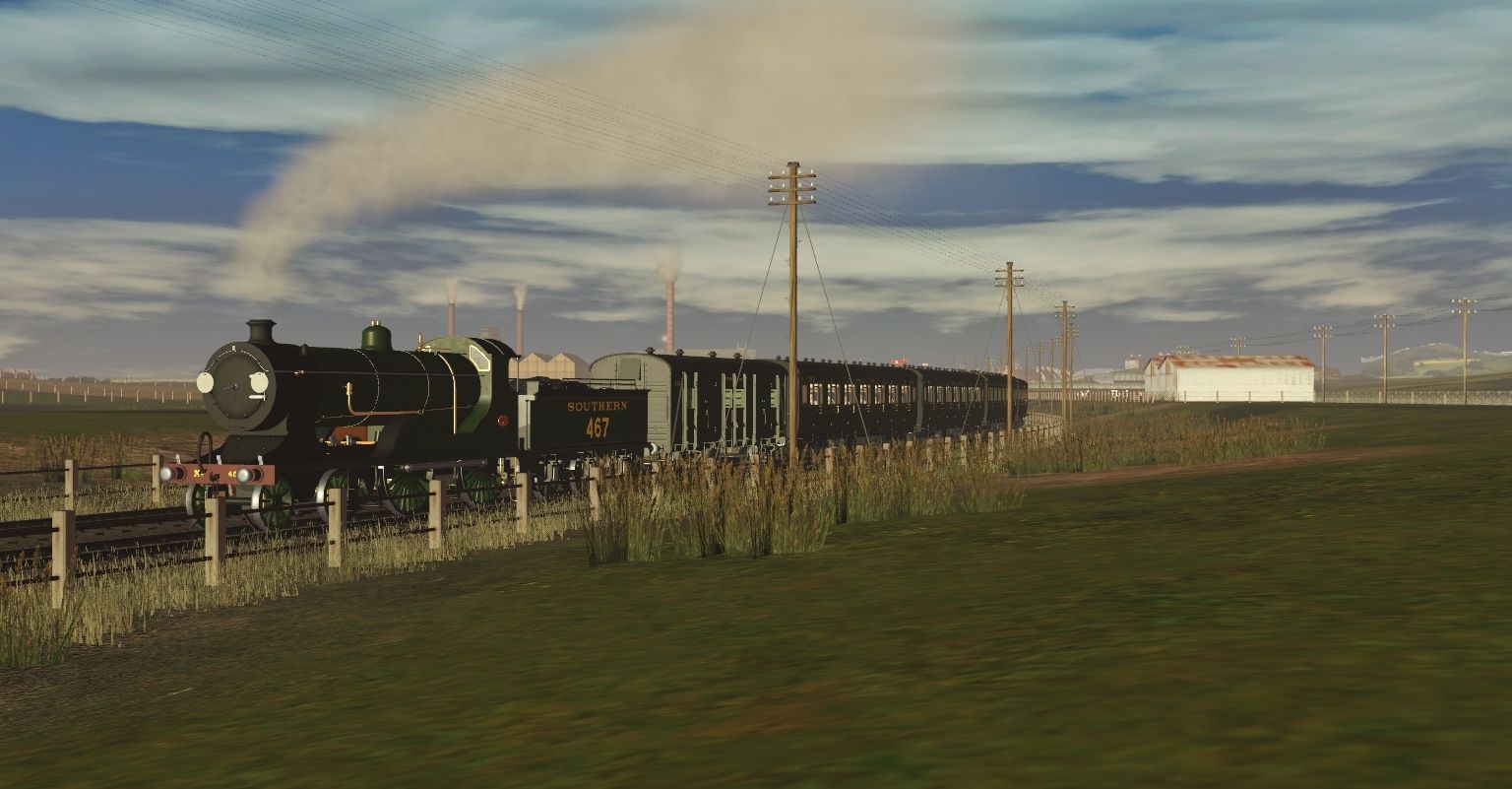 Tags: Trainz Railroad Simulator 2019, Dearnby & District : UK 1900's-1910's Mainline Branchline & Narrow Gauge V2.0, SR Drummond D15 - Olive Green, SR Drummond 6 Wheel Tender (Wide Cab) - Olive Green, SR Maunsell PLV - Passenger Luggage Van - Olive Green, SR (ex-LSWR) 56 ft Corridor First FK - Olive, SR (ex-LSWR) 56 ft Corridor Third TK - Olive, SR (ex-LSWR)) 56 ft Corridor Brake Third BTK (LH) - Olive