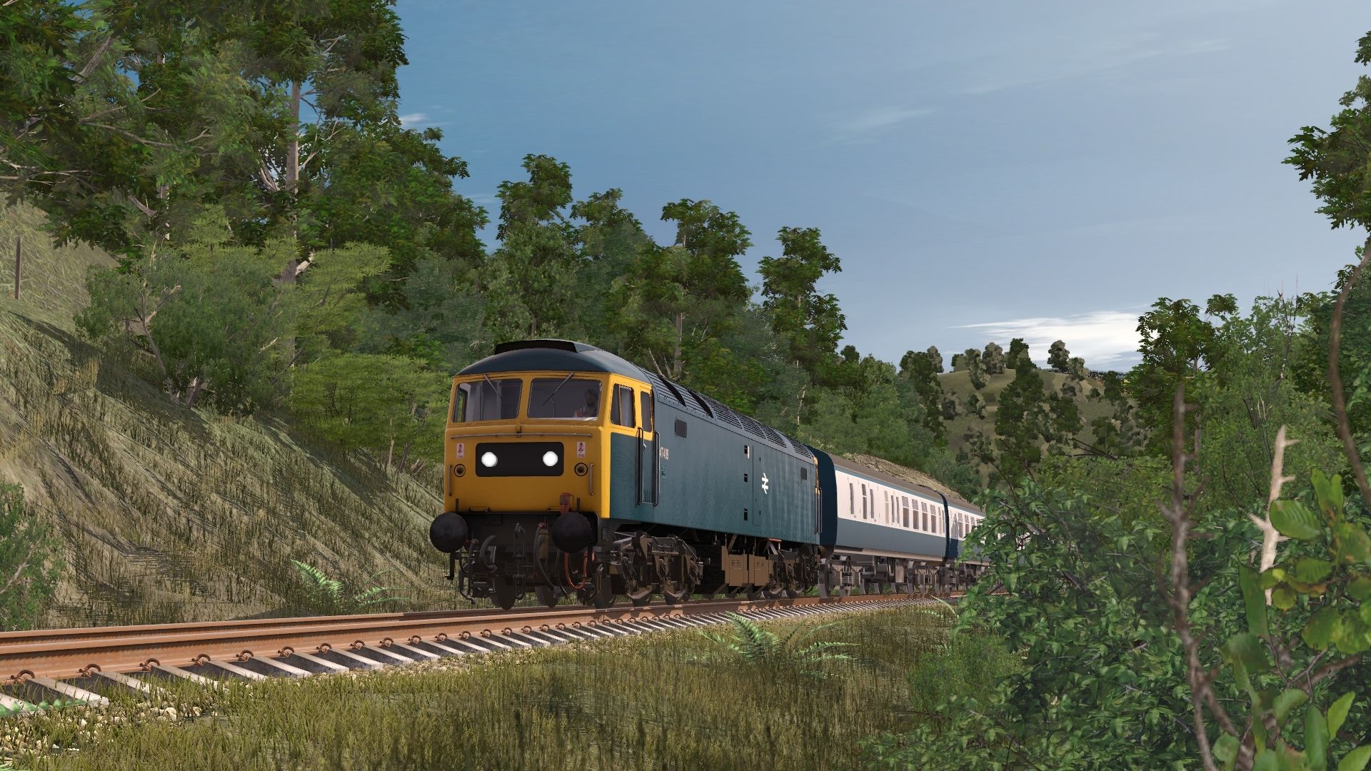Posted by: rumour3 | Posted:2022-06-28 10:14:28 Caption: Tags: Trainz Railroad Simulator 2019, Cornish Railways v1.3, BR Class 47 PBR, BR Mk1 BSK Blue, BR Mk1 SK Blue, BR Mk1 FK Blue