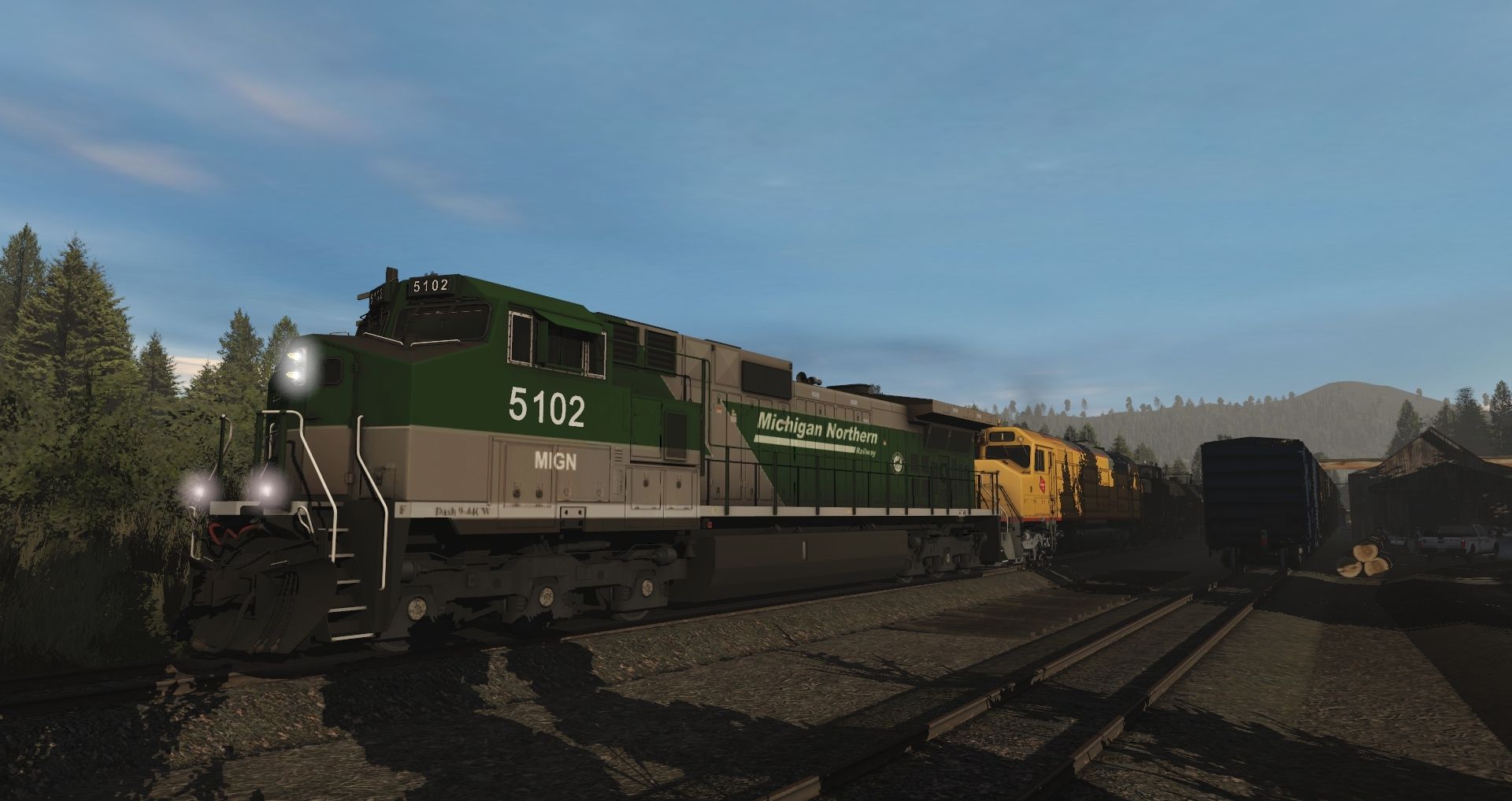 Tags: Trainz Railroad Simulator 2019, Eagle River Railway, 01 Monday - 14:57 21/05/2022 - 00:19:01, MIGN Dash 9-44CW, MILW FP45 Passenger, CSX B30-7W, CSXT 50ft Boxcar FMC, DODX Caboose, CRR 50' Waffle Boxcar (1980), CRR 60' Greenville Boxcar DD, MP 60' ACF Boxcar DD (1967), NYC 60' DSI Boxcar 988-B, NYC 60' DSI Boxcar 960-B, GATX 23000 gal Funnel-Flow tank car Richardson