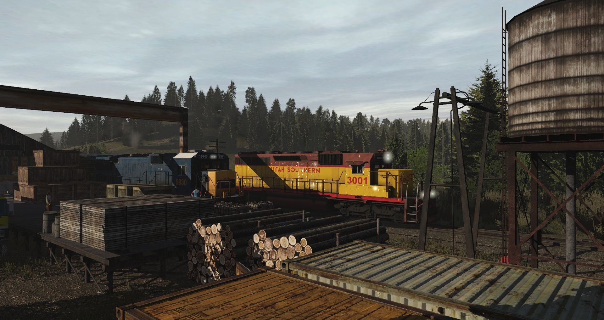 Tags: Trainz Railroad Simulator 2019, Eagle River Railway, 01 Monday - 14:57 21/05/2022 - 00:19:01, Utah Southern SD40-2 #3001 HP, HIRY B40-8 #5930 (ex CSX), Utah Southern SD40-2 #3000 HP, DTI 50' ACF Boxcar 2, RBOX 50ft Boxcar FMC, RBOX P-S 50_6ft Boxcar, 85ft GIMX Flatcar