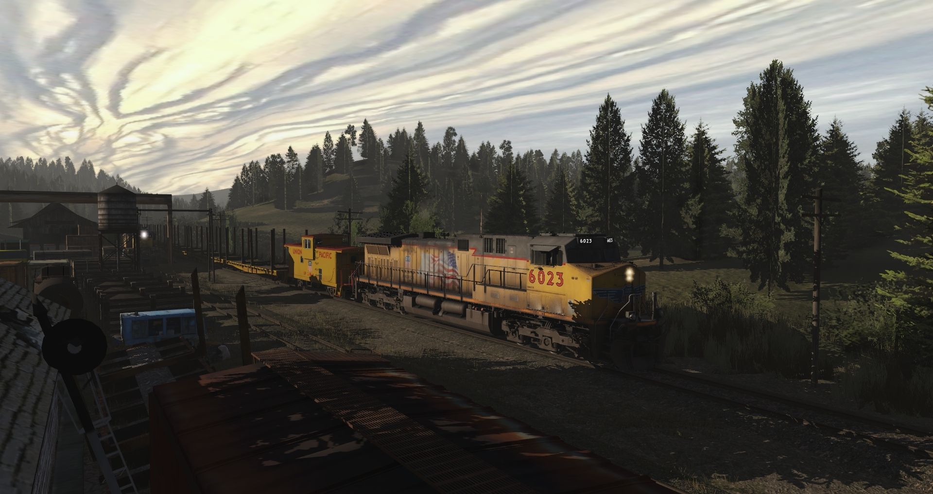 Tags: Trainz Railroad Simulator 2019, Eagle River Railway, 01 Monday - 14:57 21/05/2022 - 00:19:01, UP AC4400CW 5982-6081 TS19 3, UP GP9 late (weathered), UP Ce-11 Caboose, UP GSC 53.6ft flatcar F-70-29, DTI 50' ACF Boxcar 2, RBOX 50ft Boxcar FMC, RBOX P-S 50_6ft Boxcar