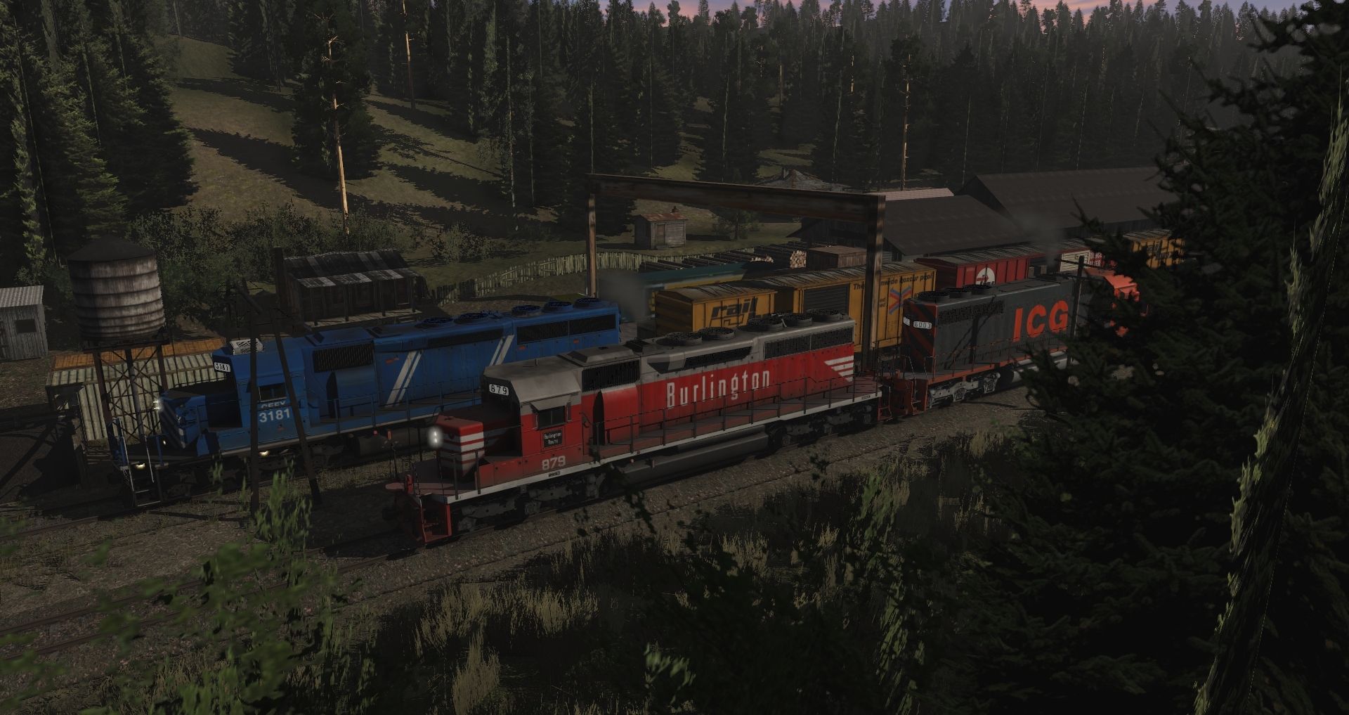 Tags: Trainz Railroad Simulator 2019, Eagle River Railway, 01 Monday - 14:57 21/05/2022 - 00:19:01, CB&Q SD40, CEFX SD40-2 3181, ICG SD40, RBOX 50ft Boxcar FMC, PW 50ft Boxcar FMC, BNSF 100 Ton Hopper, CGW 50' PS-1 (Weathered)