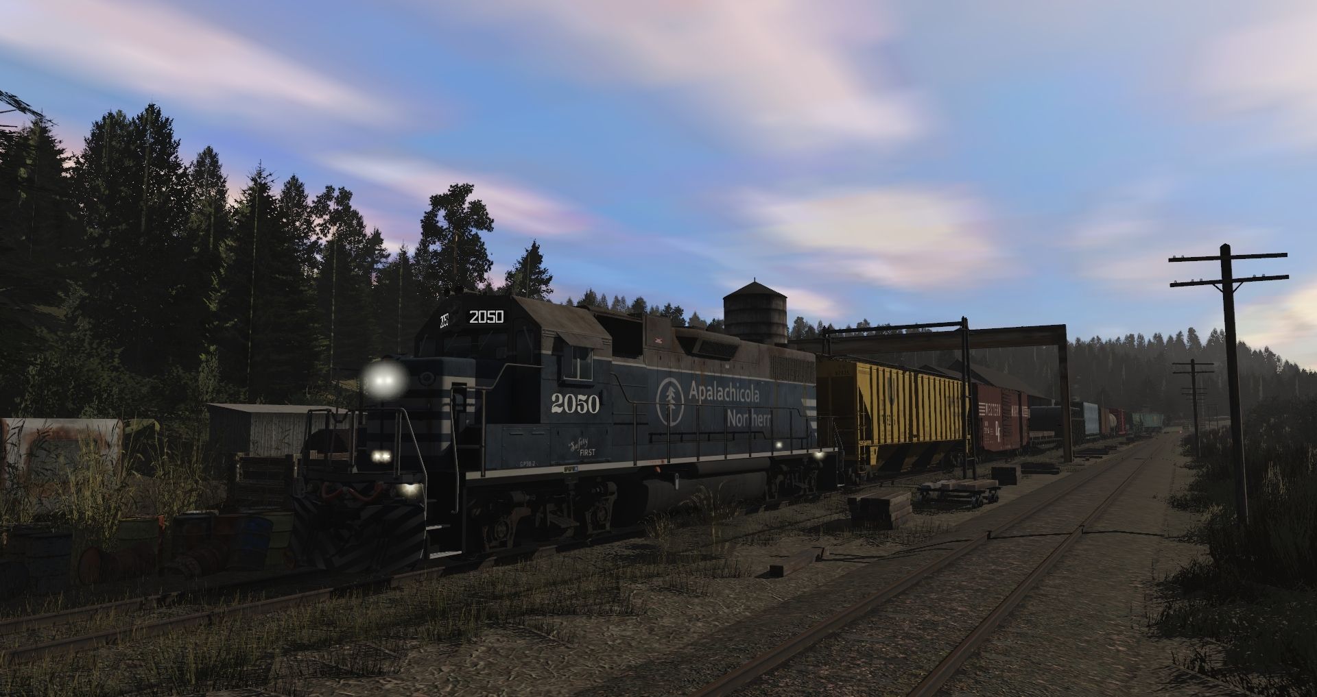 Tags: Trainz Railroad Simulator 2019, Eagle River Railway, 01 Monday - 14:57 21/05/2022 - 00:19:01, AN (New Logo) GP38-2, Utah Belt Trinity 3 Bay Hopper, WM 50' PS-1 B-25, 70ton AAR Flatcar C&O, 52ft Gondola NOKL 1, 52ft Bulkhead DWC, 40ft Boxcar NYC, TILX 20800 gal tank car OMYA Weathered, SRN 50ft Boxcar FMC, SP 60ft flatcar, AGPX 95330 Trinity 3 Bay Hopper