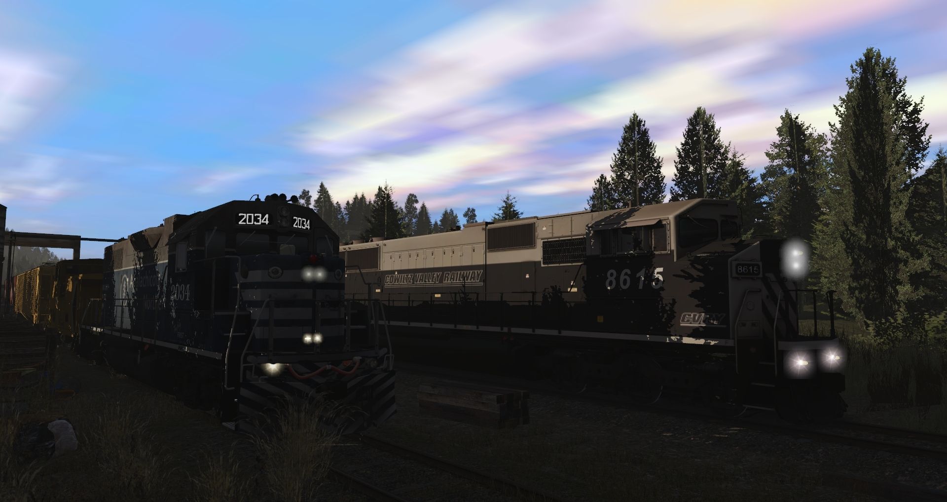 Tags: Trainz Railroad Simulator 2019, Eagle River Railway, 01 Monday - 14:57 21/05/2022 - 00:19:01, AN (New Logo) GP38-2, CVRY SD60M (Triclops), Caboose CP Rail Ce-11 #434926, Utah Belt Trinity 3 Bay Hopper, WM 50' PS-1 B-25, 70ton AAR Flatcar C&O, 52ft Gondola NOKL 1, 52ft Bulkhead DWC, 40ft Boxcar NYC, TILX 20800 gal tank car OMYA Weathered, SRN 50ft Boxcar FMC