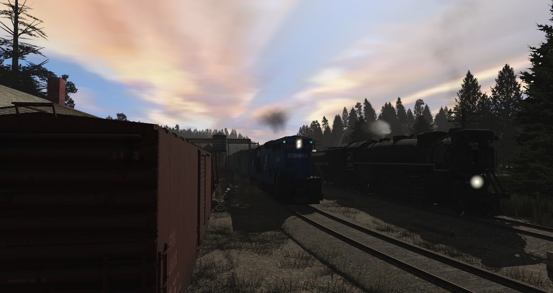 Tags: Trainz Railroad Simulator 2019, Eagle River Railway, 01 Monday - 14:57 21/05/2022 - 00:19:01, C&O K-2 Mikado Engine, CR SD9 Cab Signal Box, HLCX SD60 Ghost, C&O K-2 Mikado Tender, CCRR RS PS-2 3510, AGPX 95461 Trinity 3 Bay Hopper, C&O 50' PS-1 Insulated (1960s), AGPX 95330 Trinity 3 Bay Hopper, SP 60ft flatcar, SRN 50ft Boxcar FMC, TILX 20800 gal tank car OMYA Weathered