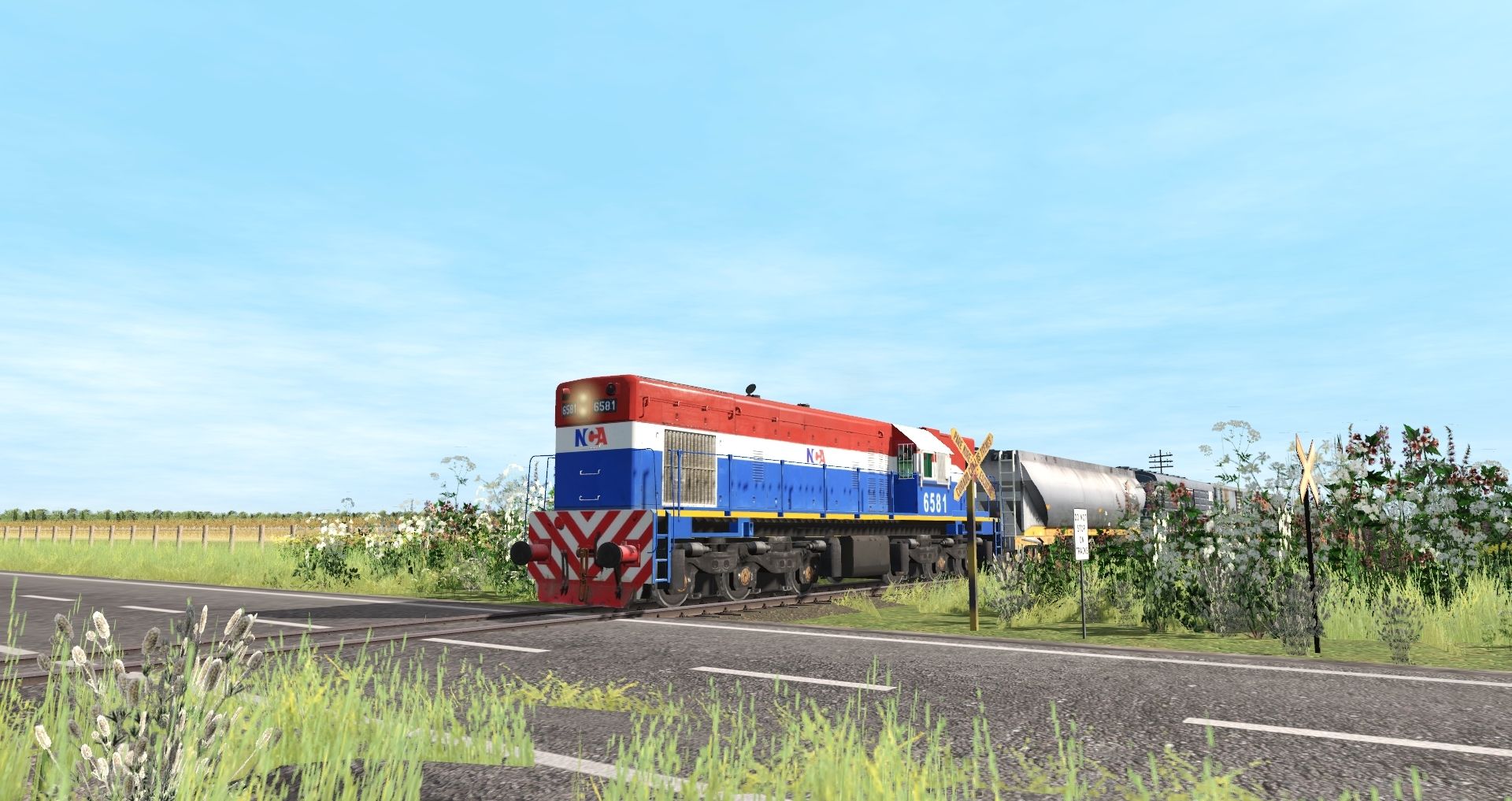 Tags: Trainz Railroad Simulator 2019, Ferrocarriles Justicialistas 2022, 21/2/2022, GM GR12W 6581 NCA, ALCo / MLW RSD-35 6446 ALL, GM GA8W 5562 ALL, ALCo / MLW RSD-35 6425 BAP, EMD GT22CW-2 9085 Ferrobaires, Tolva Cerealera CT75 NCA - 4, Tolva Cerealera CT76 NCA - 1, Tolva Cerealera CT76 NCA - 2, Tolva Cerealera CT76 NCA - 3, Furgon Z4 - 996769 - Ferrocarriles Argentinos, Tolva Minera Ferrosur Roca 2
