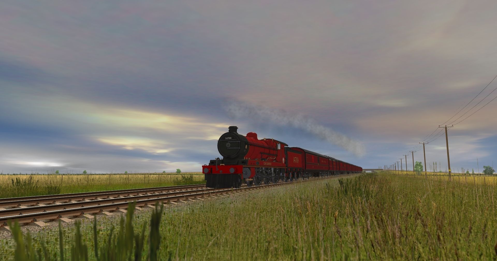 Tags: Trainz: A New Era, ECML Kings Cross - Edinburgh, Highland Cumming Clan - LMS Crimson, Highland Cumming Clan Tender - LMS Crimson, LMS P2 POS PO Sorting Van (D1792), LMS P2 POT PO Stowage Van (D1793), LMS P2 POS PO Sorting Van - no net (D1792)
