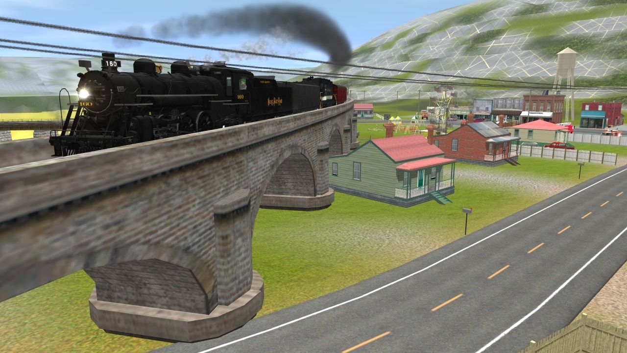 Tags: Trainz: A New Era, Ozark Valley Railroad Version 3.6 TS12, Nickel Plate Road K-1a 4-6-2 160 Engine, SOU GP35 (HH), Nickel Plate Road K-1a 4-6-2 tender, N&W Aux Tender Unlettered, N&W Tool Car #9647, Unmarked Excursion Power Car 1944, Unmarked Excursion Baggage Car 1943, NKP Lightweight Pullman 5DBR Dorm Lounge, Unmarked Excursion 10 Coach 805, C&O dome, B&O dome