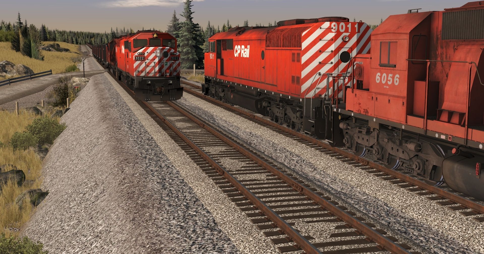 Tags: Trainz Railroad Simulator 2022, BN Oasis, Default, CP Rail SD40-2 6055-6069 B Unit, CP Rail SD40-2 6055-6069 Multimark, CP SD40-2F 1A, CP SD40-2F 1B, CP Teoli Gondola Black