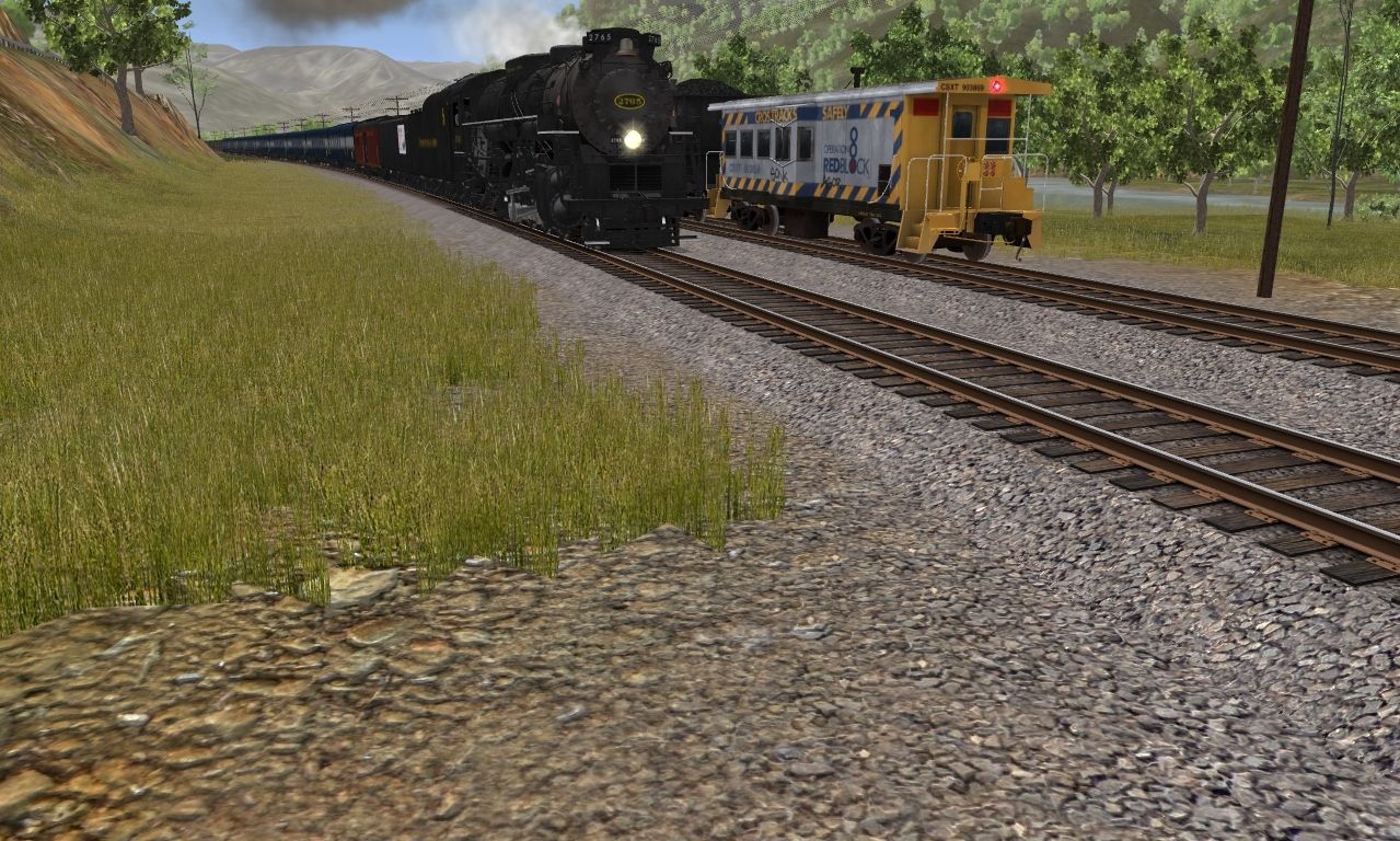 Tags: Trainz: A New Era, C&O Hinton Division, C&O 2765 Engine, SD80MAC CSX Dark Future, SD80MAC CSX YN2, CSX Bay Window Caboose, C&O 2765 Tender, C&O 2765 Aux Tender, NKP Tool Car RPCX 701, CSX Business Train 01 Dorm, CSX Business Train 02 Coach, CSX Business Train 03 Coach, CSX Business Train 04 Coach
