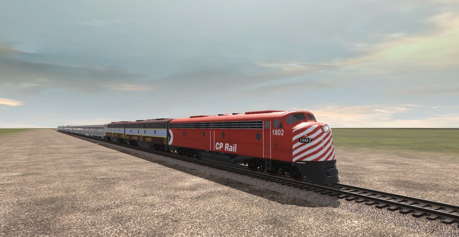 Tags: Trainz Railroad Simulator 2019, Consist - Test Route (TRS19/22 & PBR), Default, Canadian Pacific(CP1802)E8A, Canadian Pacific(CP1901)E8B, Canadian Pacific(CP1800)E8A, CPR Budd Railway Post Office, CPR Budd Baggage car, CPR Budd Coach, CPR 'Chateau' Sleeping Car, CPR 'Manor' Series Sleeping Car, CPR Budd Dining Car, CPR Budd Dome Buffet Coach, CPR Park Series Observation Dome