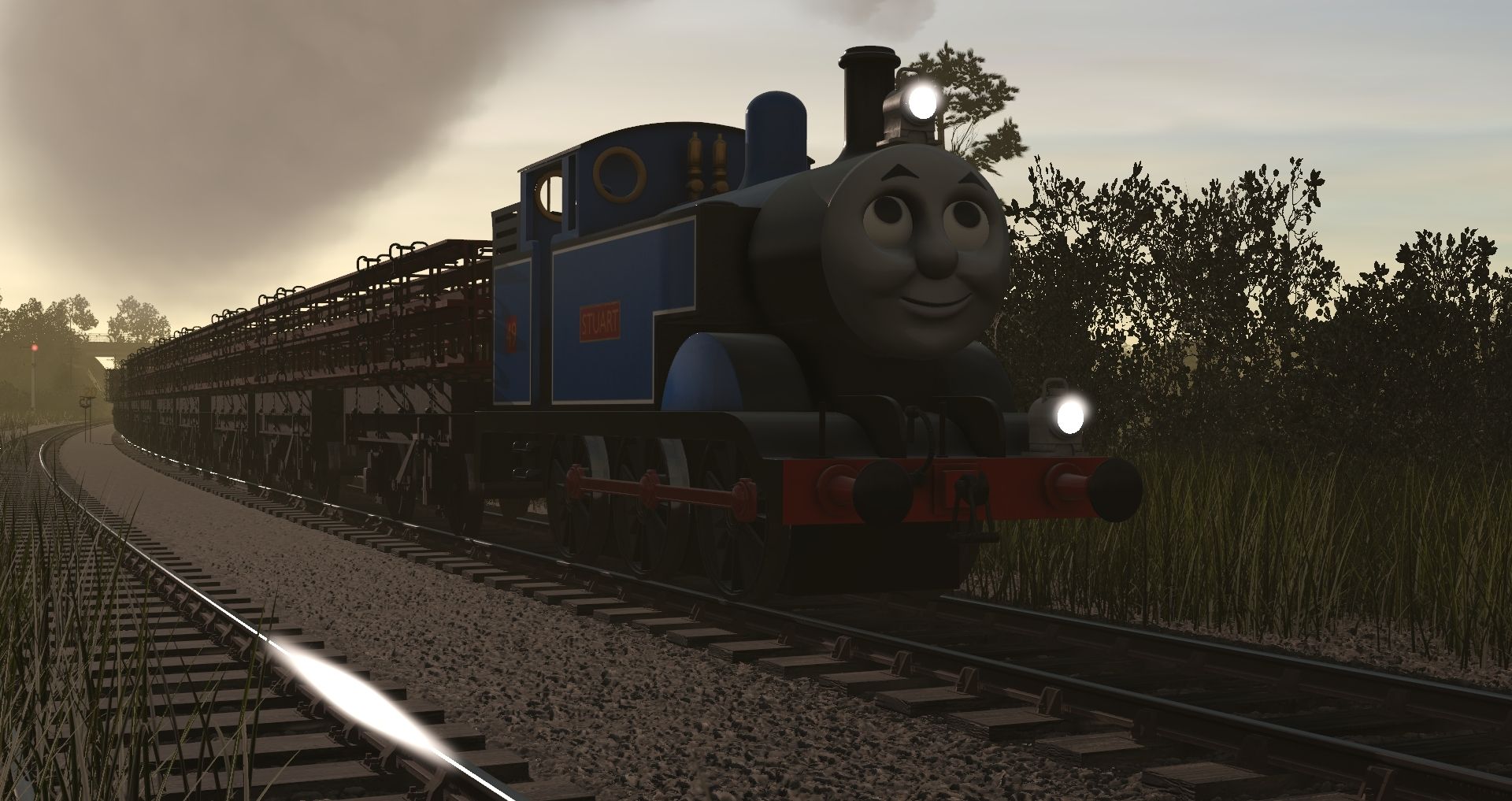 Tags: Trainz Railroad Simulator 2019, Cornish Mainline and Branches - TRS19, Default, TTTE - Thomas The Tank Engine, GWR 57xx class, GWR 51xx large Prairie, Engie's - TVS 1 Plank Bolster Wagon (Small Bridge Girder TS19), Engie's - TVS 1 Plank Bolster Wagon (Medium Bridge Girder TS19), Engie's - TVS 1 Plank Bolster Wagon (Large Bridge Girder TS19), GWR (F. Bendle) 20T Mineral empty, Engie's - TVS L&B 4T Van (TS19), CR3D - BR Brown 20T Brake Van Vacuum Fitted 09 Version, GWR (F. Bendle) 20T Mineral coal load, GWR 1930 Multivan TRS2004