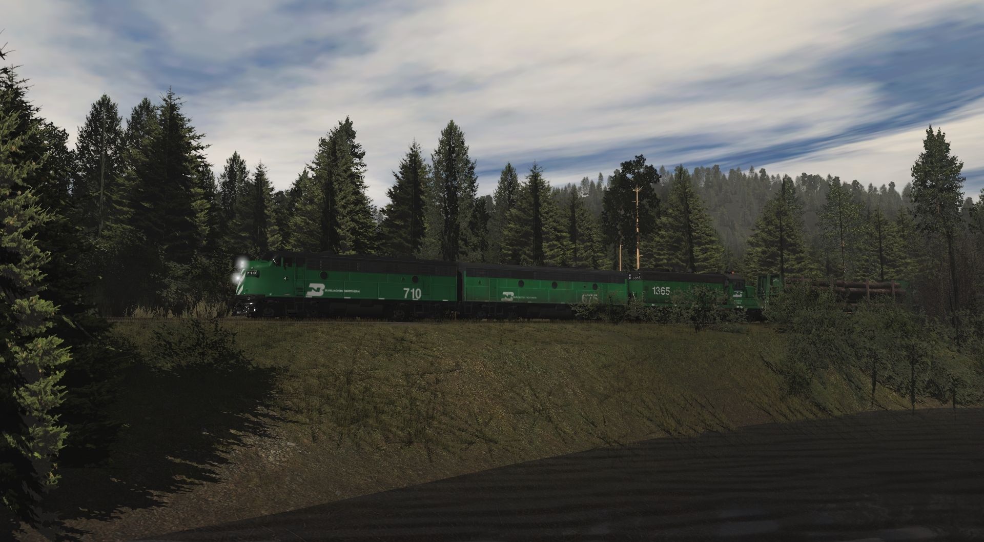 Tags: Trainz Railroad Simulator 2019, Eagle River Railway, Flying Cam, EMD F7A BN #710, BN F7B #675, BN GP5 low hood, BN 62Ft. Bulkhead (early era), BN Ce-11 Caboose