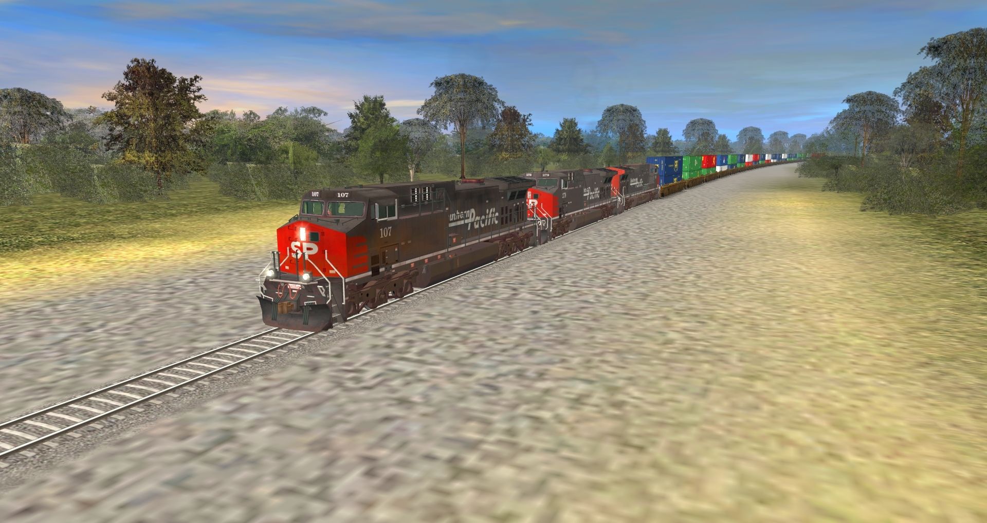 Posted by: Dashboy22 | Posted:2022-07-01 23:03:40 Caption: Tags: Trainz: A New Era, BNSFRedRock, SP AC4400CW #107, SP AC4400CW #279, SP AC4400CW #309, TTX NSC 53 Double stack Well