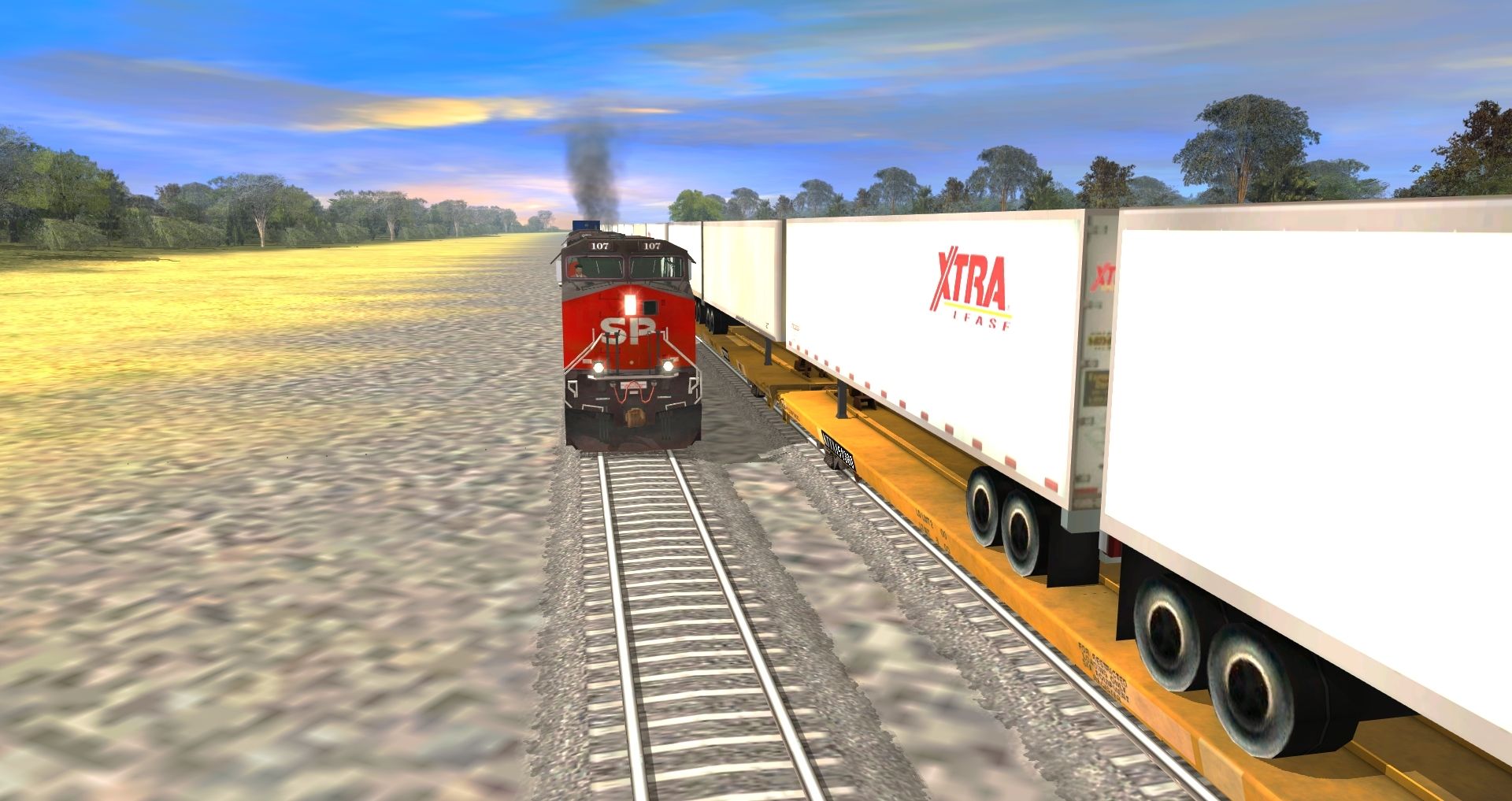 Tags: Trainz: A New Era, BNSFRedRock, SP AC4400CW #107, SP AC4400CW #279, SP AC4400CW #309, TTX NSC 53 Double stack Well, TTX Patched 89ft TOFC Flatcar