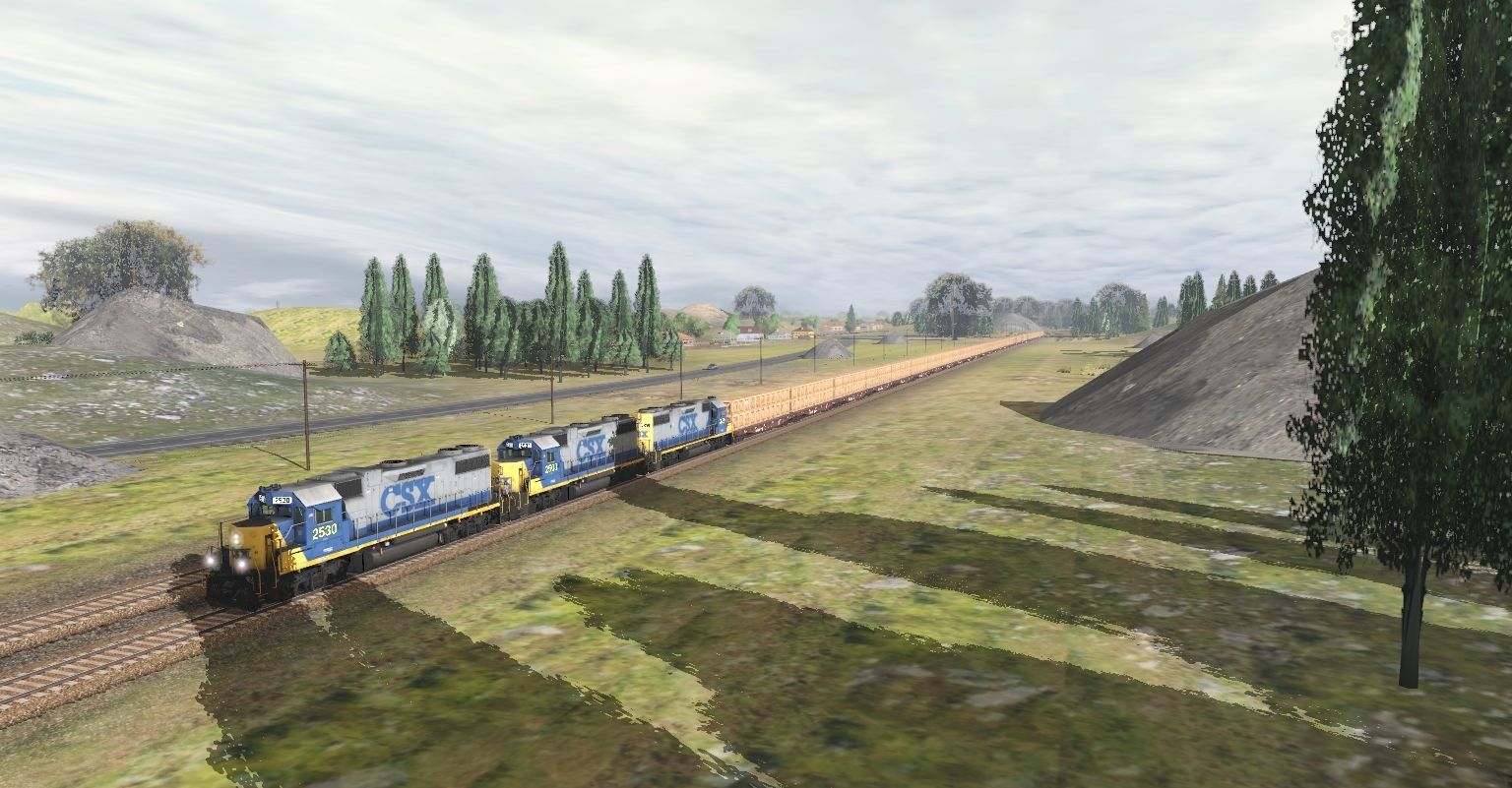Tags: Trainz Railroad Simulator 2022, BLOEMFONTEIN West In, BLOEMFONTEIN West In - Default, CSX GP38-2 YN-2 (ex-SCL), BNSF Flat car 917504, SP C50-9 Caboose