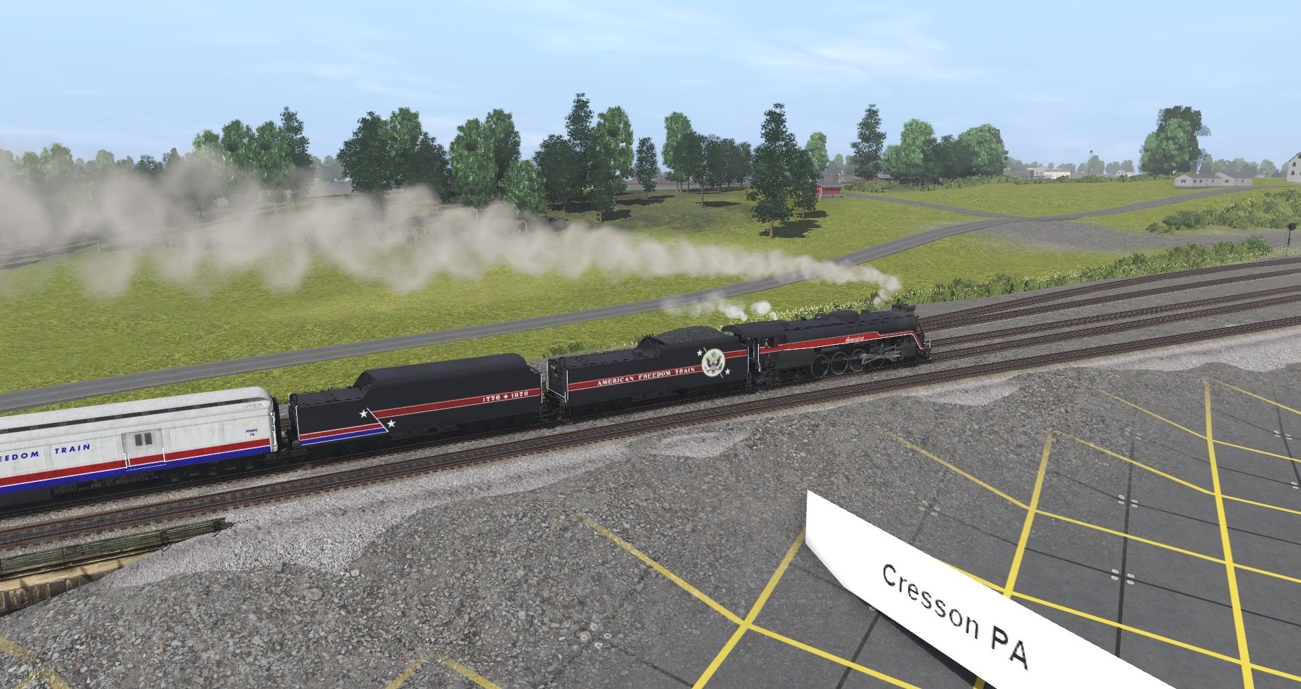 Tags: Trainz Railroad Simulator 2019, Pitts to Philly and More WIP 22a, July 4 K&L, AFT T1 Engine, AFT 01 Tool Car, AFT T1 Aux Tender, AFT T1 Tender, AFT 02 Trailer Car, AFT 03 Trailer Car, AFT 04 Trailer Car, AFT 05 Showcase Car, AFT 06 Showcase Car, AFT 07 Display Car, AFT 08 Display Car