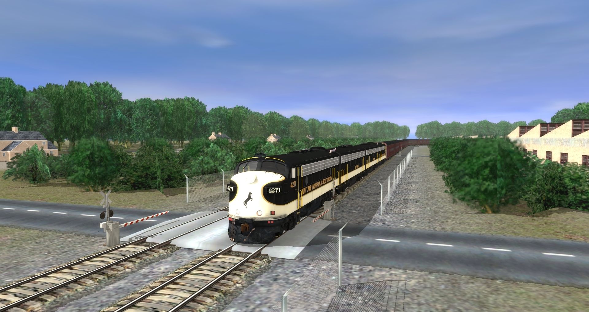 Tags: Trainz: A New Era, NS Fostoria District, NS F9A 4271, NS F7B 4275, NS F7B 4276, NS F9A 4270, NS HEP Power Car Tennessee, NS Coach Car New Jersey, N&W MRLX 1490 Sleeper 'Ohio State University, NS Coach Car Iowa, NS Coach Car Louisiana, NS Coach Car Florida, NS Coach Car Powhatan Arrow 28