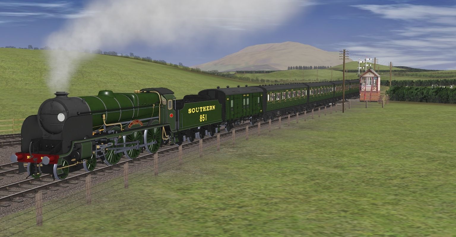 Tags: Trainz Railroad Simulator 2019, Dearnby & Region V3: UK 1950's - 60's v1 449L, SR Maunsell Lord Nelson - Deflectors, SR Maunsell U (ex-K) Class - Olive green, SR Maunsell 5000 Gal Tender - Olive Green, SR Maunsell PLV - Passenger Luggage Van - Olive Green, SR (ex-LSWR) 56 ft Corridor First FK - Olive, SR (ex-LSWR) 56 ft Corridor Third TK - Olive, SR (ex-LSWR)) 56 ft Corridor Brake Third BTK (LH) - Olive, SR Maunsell 3500 Gal Tender - Olive Green, SECR Wagon 10 Ton Van Southern Early, SECR Wagon Implement Truck Southern Early, United Oil Importers 21 foot Tanker Early detailed - weathered