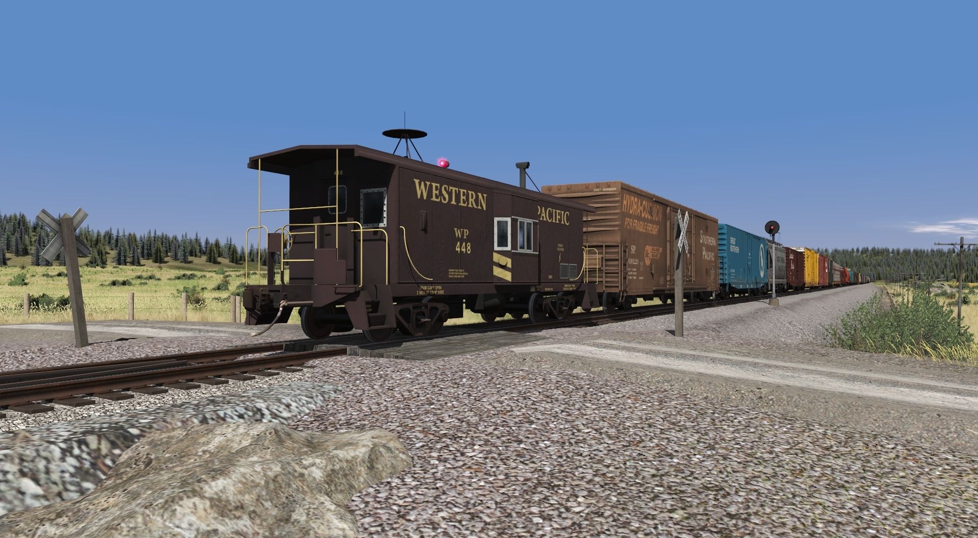 Tags: Trainz Railroad Simulator 2019, BN Oasis, Flying Cam, WP F7A Perlman Late, WP GP35 Pumpkin, WP GP40 ph2c #1776, WP C50-9 Caboose, SP B-70-50 box car, GN 50' Plug Door Boxcar #36436, NP 2 Bay Hopper ACF 2971, CP 50' Boxcar HSC [Autoparts] (Script), MILW 60ft Boxcar PS (Autoparts), SP 60ft Boxcar Berwick B-100-46 (Autoparts)