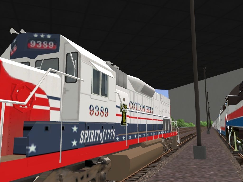 Tags: Trainz: A New Era, Brazemore Yard, American Freedom:Class GS-4 Steam Engine, EMD SD40T-2 SSW Bicentennial #9389, ATSF Bicentenial loco, American Freedom:Class GS-4 Tender, American Freedom:Car #040, American Freedom:Car #041, American Freedom:Car #100, American Freedom:Car #101, American Freedom:Car #104, American Freedom:Car #107, American Freedom:Car #108