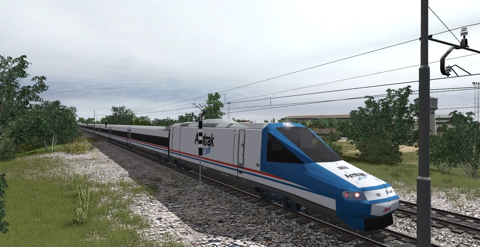 Tags: Trainz Railroad Simulator 2019, Sebino Lake Italy (1980s), Default, AV01 AMTRAK San Jose, AV01 Amtrak tail car, AV01 Amtrak inter car, AV01 Amtrak center car