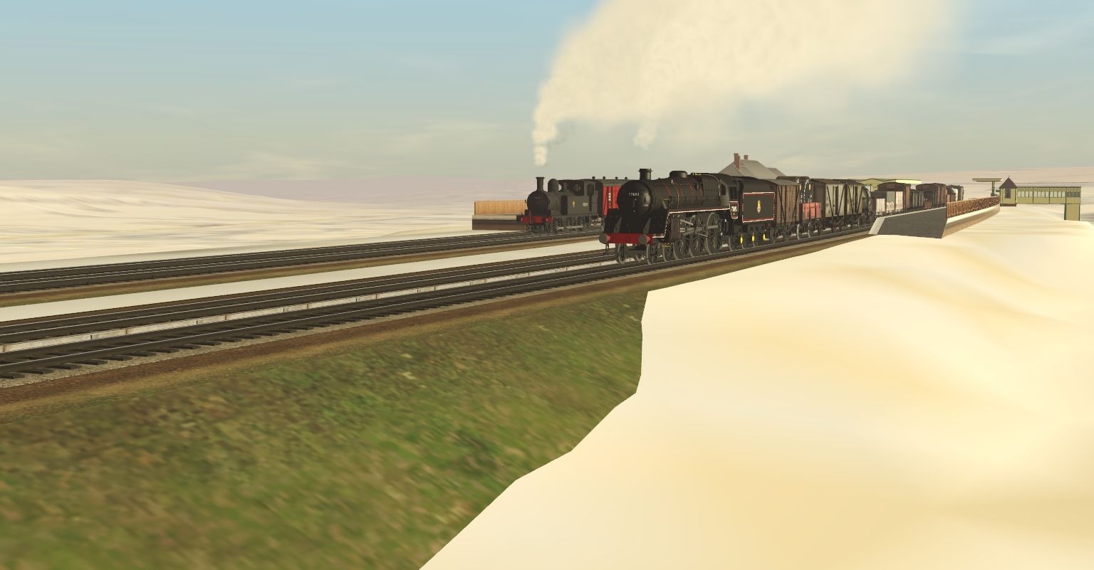 Tags: Trainz Railroad Simulator 2019, South London Test MK 2.08, BR Standard Class 5, LSWR G6 BR Plain Black, BR Standard Tender BR1B (Early Emblem), BR 12T Standard Van Weathered, BR 13T Open Steel Wagon Weathered, BR 12T Insulated Blue Spot Fish Van (Diag. 800), BR 12T Insulated Blue Spot Fish Van Dirty (Diag. 800), RCH 14T Class B Tanker (Shell-BP), BR Maunsell PMV - Passenger Miscelaneous Van - Crimson, RCH 1923 5 Plank BR Period 01, Ex-PO 8 Plank