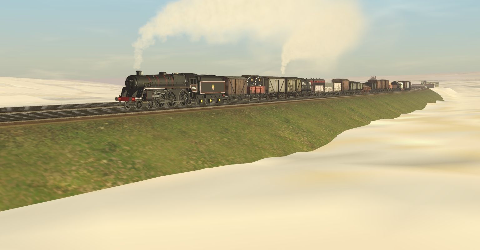 Tags: Trainz Railroad Simulator 2019, South London Test MK 2.08, BR Standard Class 5, LSWR G6 BR Plain Black, BR Standard Tender BR1B (Early Emblem), BR 12T Standard Van Weathered, BR 13T Open Steel Wagon Weathered, BR 12T Insulated Blue Spot Fish Van (Diag. 800), BR 12T Insulated Blue Spot Fish Van Dirty (Diag. 800), RCH 14T Class B Tanker (Shell-BP), RCH 1923 5 Plank BR Period 01, Ex-PO 8 Plank, BR 12T Standard Van Weathered (Plywood)