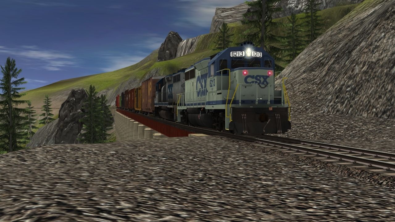 Tags: Trainz: A New Era, Kickstarter County, Free Drive Session Test 01, CSX GP40-2, GP40-2 CSX-s, WP PC&F 6033, RBOX 50ft Boxcar FMC, SOU 60' ACF Boxcar SD, WP 60ft Boxcar Berwick (Autoparts), NW 60ft Boxcar PS [Black] (Autoparts), DTI 50' ACF Boxcar 1, ATSF 60ft Boxcar PS (Autoparts), MKT 60' ACF Boxcar DD, CSX Bay Window Caboose
