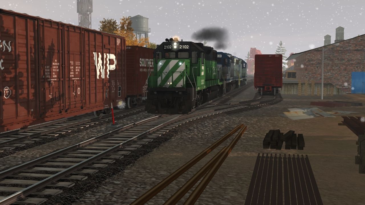 Tags: Trainz: A New Era, Kickstarter County, Free Drive Session Test 01, BN GP38-2, CSX GP40-2, GP40-2 CSX-s, NW 60ft Boxcar PS [Black] (Autoparts), WP 60ft Boxcar Berwick (Autoparts), SOU 60' ACF Boxcar SD, RBOX 50ft Boxcar FMC, MKT 60' ACF Boxcar DD, C&O 60' ACF Boxcar DD (1970), ATSF 60ft Boxcar PS (Autoparts), BN P-S 50_6ft Boxcar