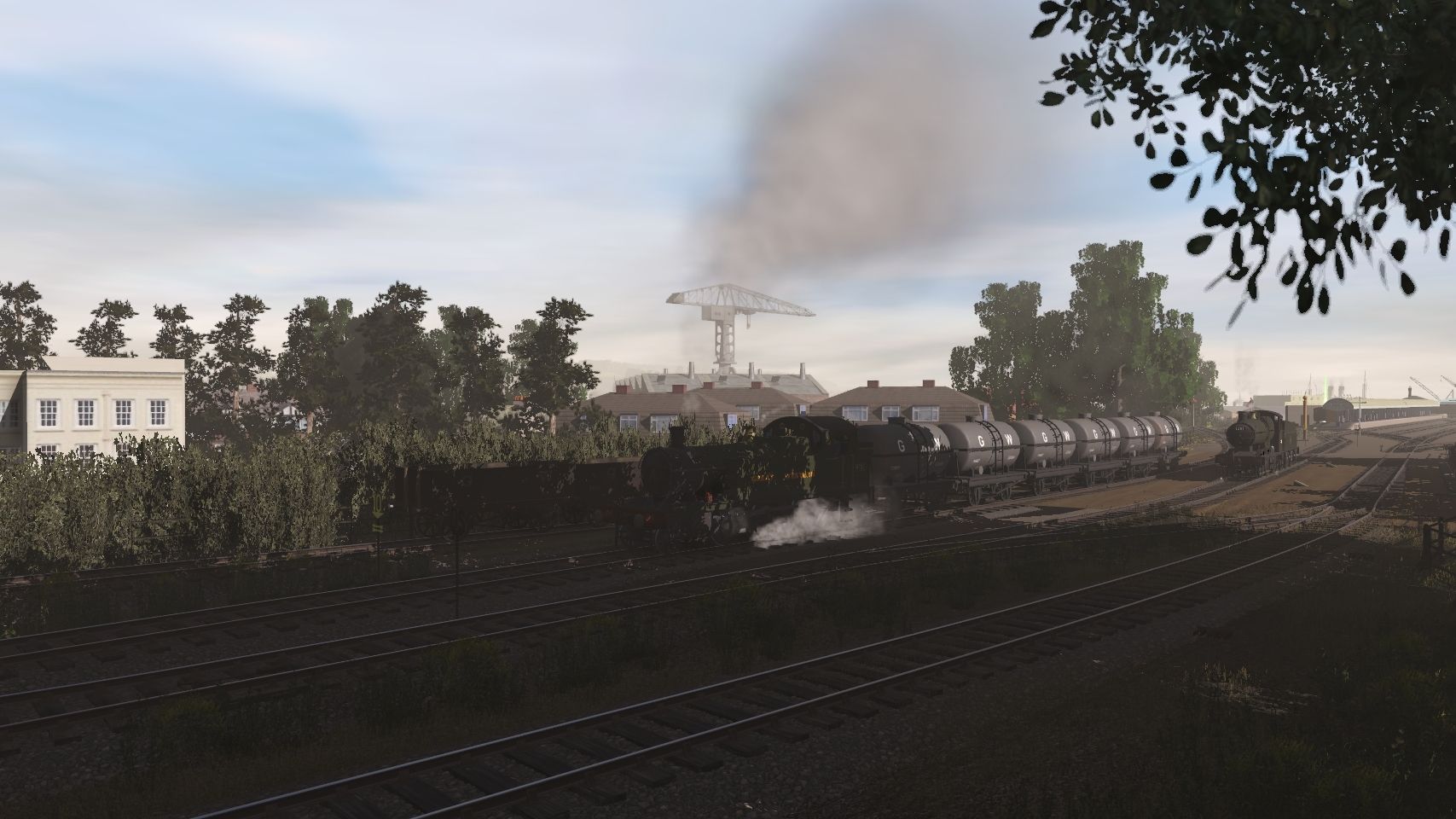 Tags: Trainz Railroad Simulator 2019, Cornish Mainline and Branches - TRS19, Work on the Falmouth Docks Branch, GWR 45xx, BR 2251 lined class Collett Goods, GWR tanker number 73981, GWR tanker number 74427, BR 2251 class lined tender, GWR 20T Toad Brake Van, GWR 1922 3rd Plymouth lot 1308, BR FEA-S GBRf metronet single intermodal flat wagon, GWR 1922 3rd brake Plymouth lot 1321, BR FEA-S GBRf single intermodal flat wagon, Ore Barge Unloaded