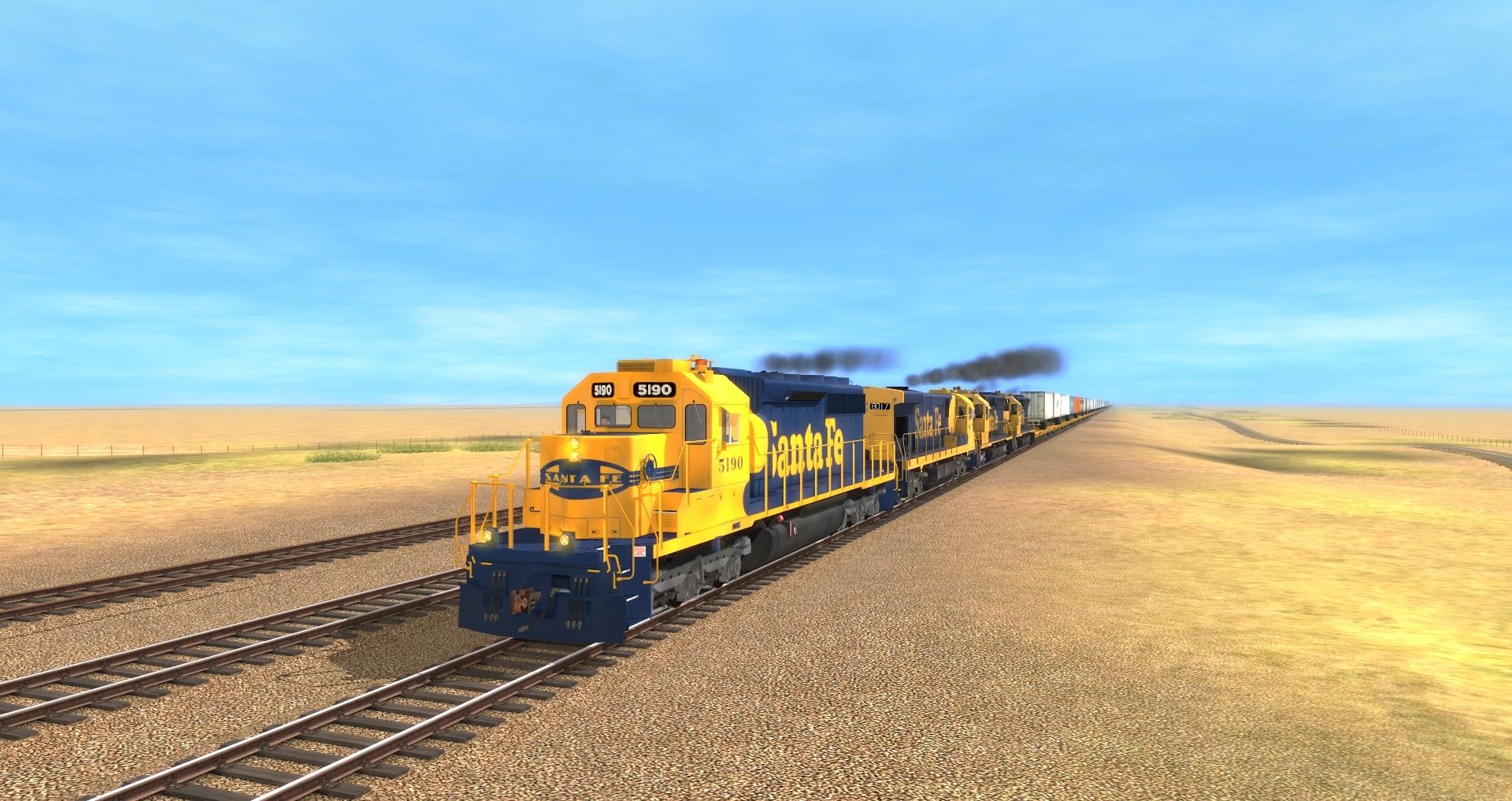 Tags: Trainz: A New Era, Clovis Sub 2-5 v1-0a, ATSF SD40-2 #5190, ATSF C30-7, ATSF SD45, TTX Patched 89ft TOFC Flatcar, ATSF Ce-11 Caboose