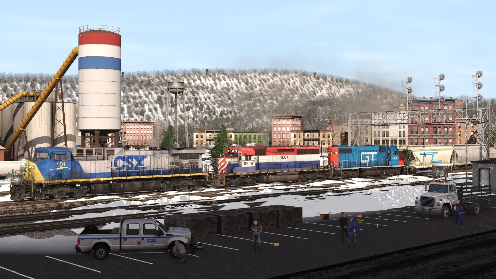 Tags: Trainz Railroad Simulator 2019, First Attempt Winter, CSX AC4400CW YN2 100-115, HLCX SD40-2 6206, GP38-2 GTW, Invisible loco, ACFX #27801 3 Bay ACF, GATX ACF Centerflow 4 Bay round hatch W, TILX 20800 gal tank car OMYA Weathered, BCOL 802378 Trinity 3 Bay Hopper, IARX 20800 gal tank car, CCLX #51025 4 bay ACF, CCLX #51045 4 bay ACF