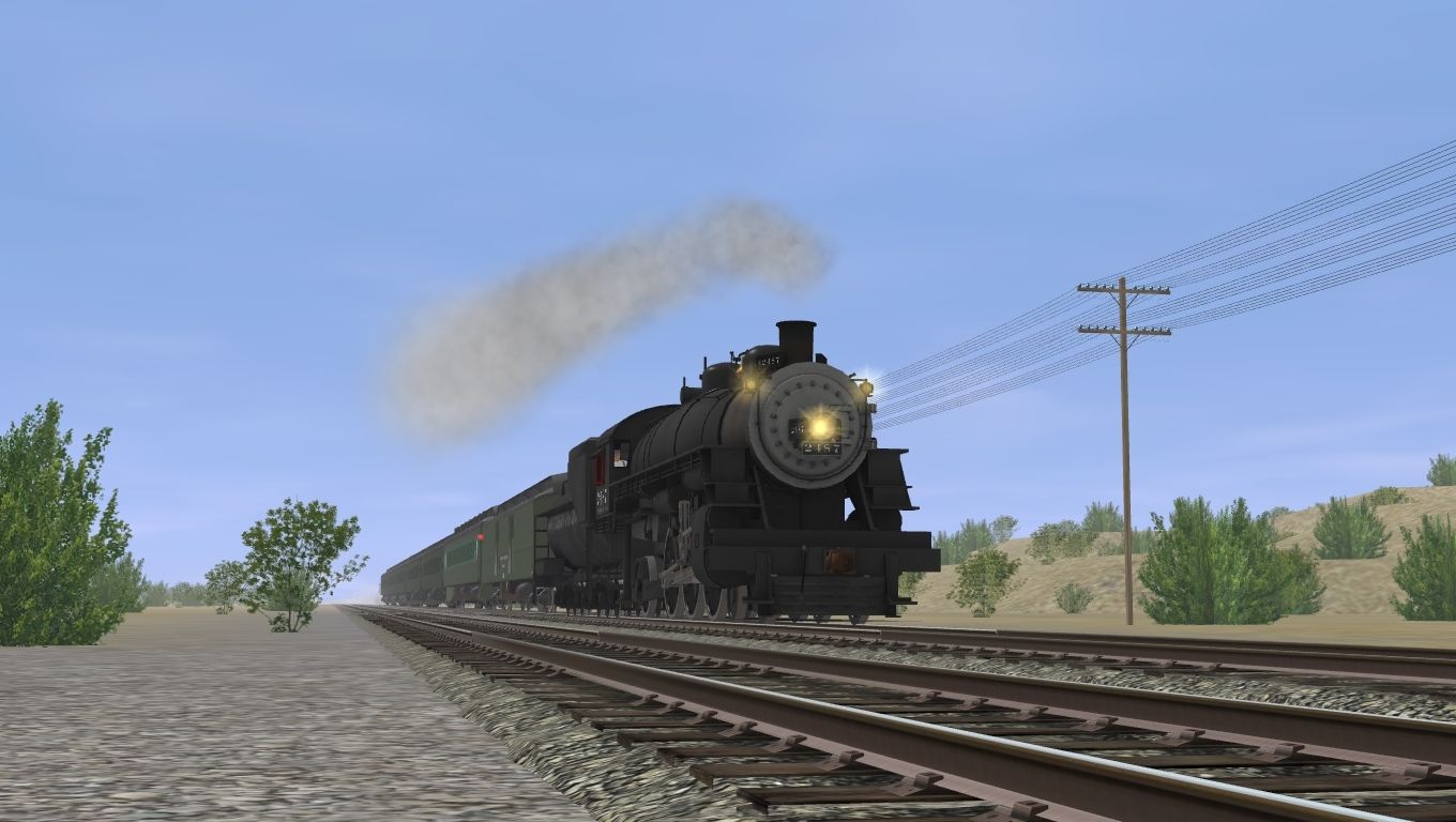 Tags: Trainz: A New Era, Southern California, san dimas, Southern Pacific Class P-10 4-6-2 - As Built, Southern Pacific P-10 Tender, Unlettered Pullman Baggage-Express Car, Unlettered Pullman Coach, Unlettered Pullman coach