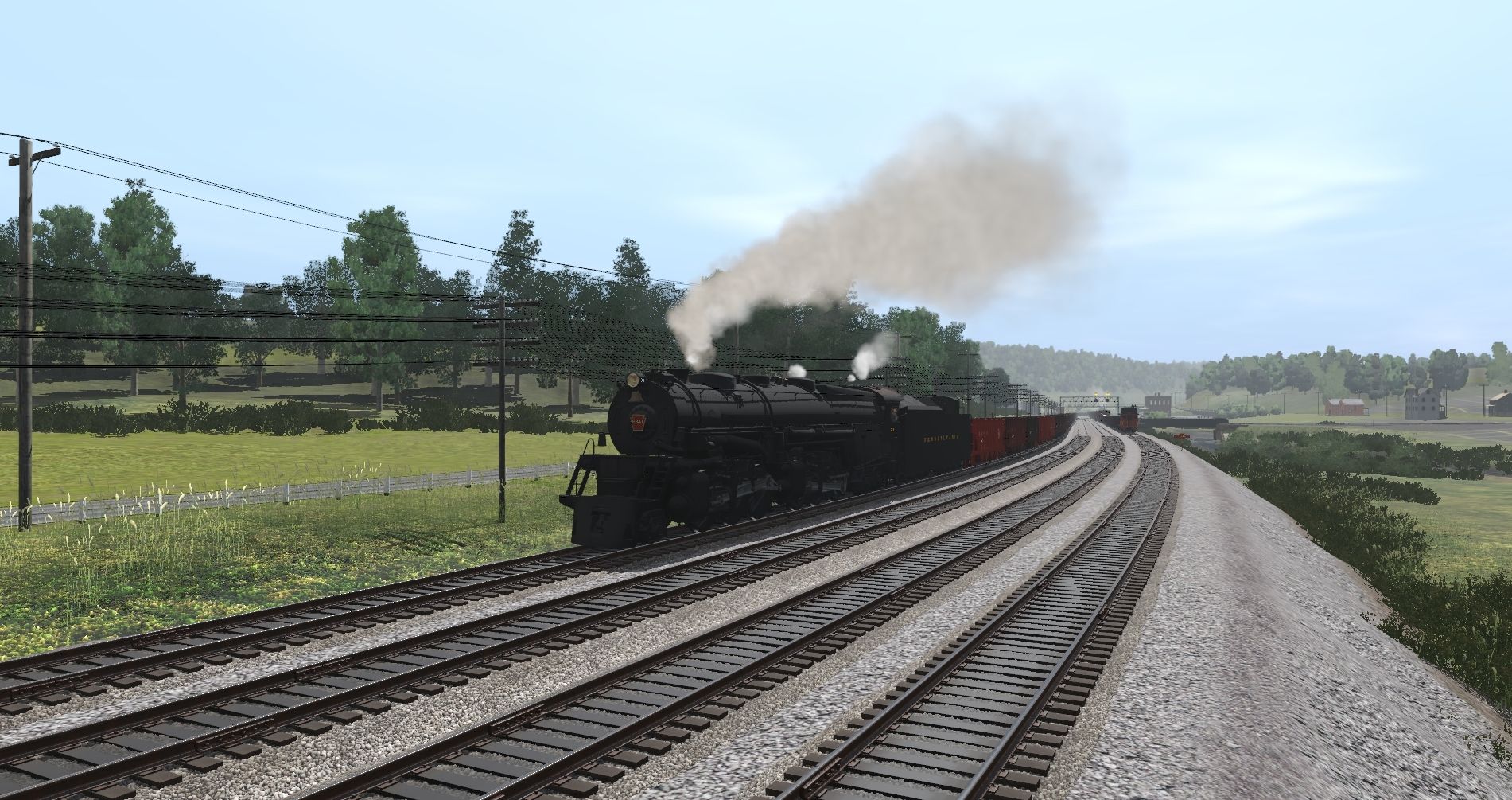 Tags: Trainz Railroad Simulator 2019, Pitts to Philly and More WIP 22a, Lilly pic's , PRR FG-1 Articulated Engine, PRR E7s 7002 Engine, PRR M1b Engine, PRR FG-1 Articulated Tender, PRR Caboose N5B 1949 # 477772, USRA C Gondola PRR, 40ft PRR AAR boxcar, B&URR LO 2003 late, SRC 06 Open Window Conestoga Creek, Flatcar50ft PRR h#, SRC 05 Open Window Pleasant View